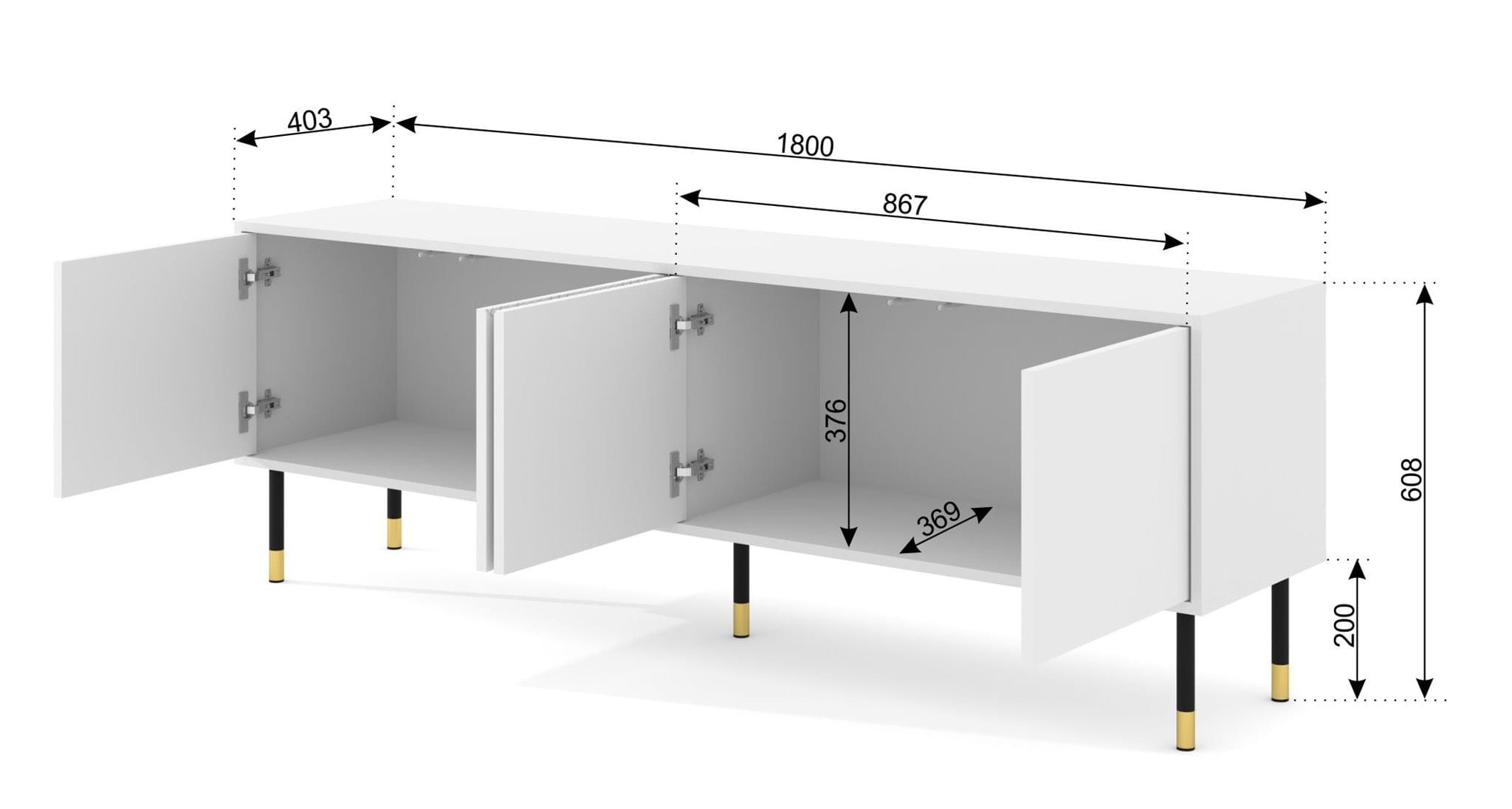 Jej nowoczesny design z frezowanymi frontami i solidnymi metalowymi nóżkami sprawia, że doskonale wkomponuje się w różne aranżacje wnętrz.