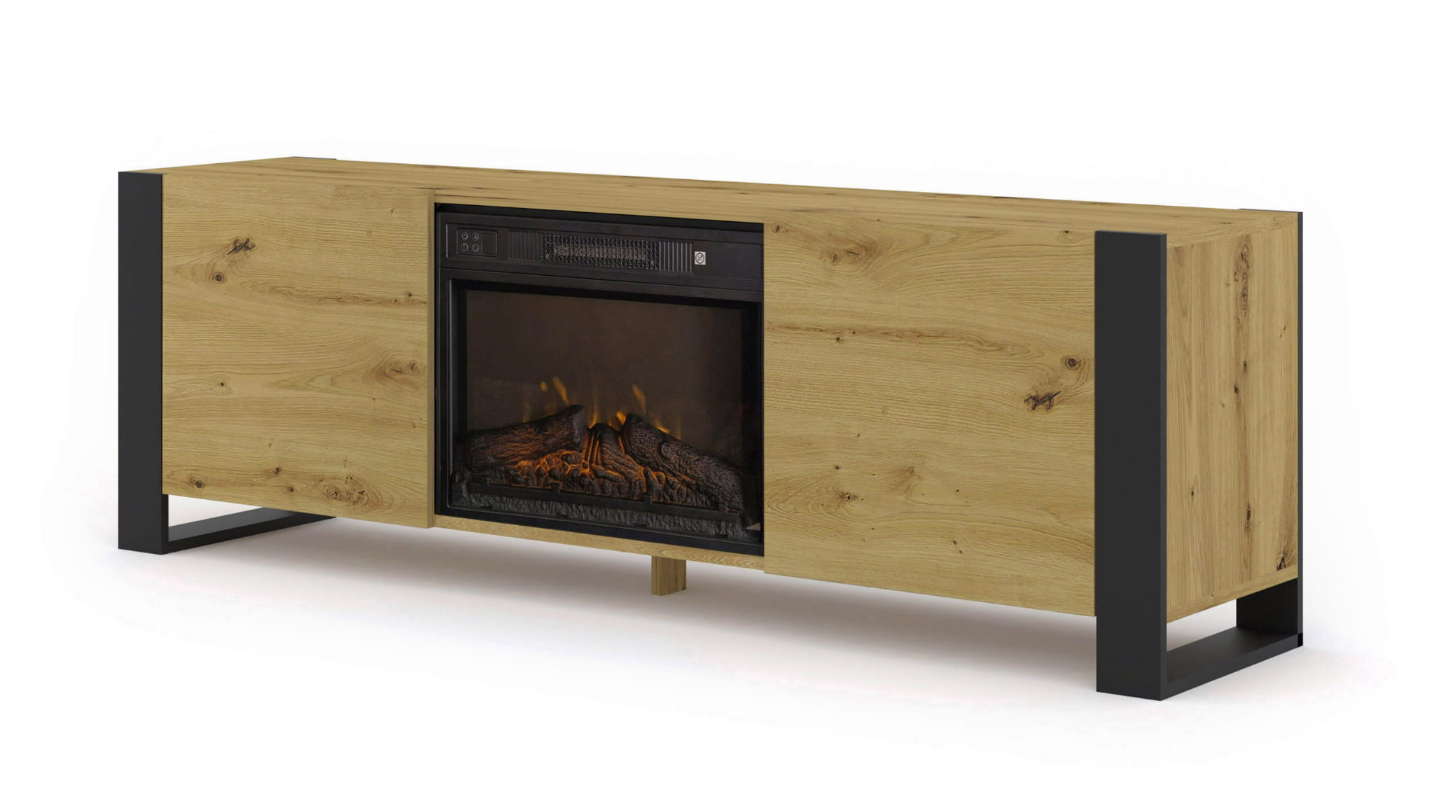 Szafka RTV 180 cm, z kominkiem elektrycznym, do salonu dąb artisan Mondi