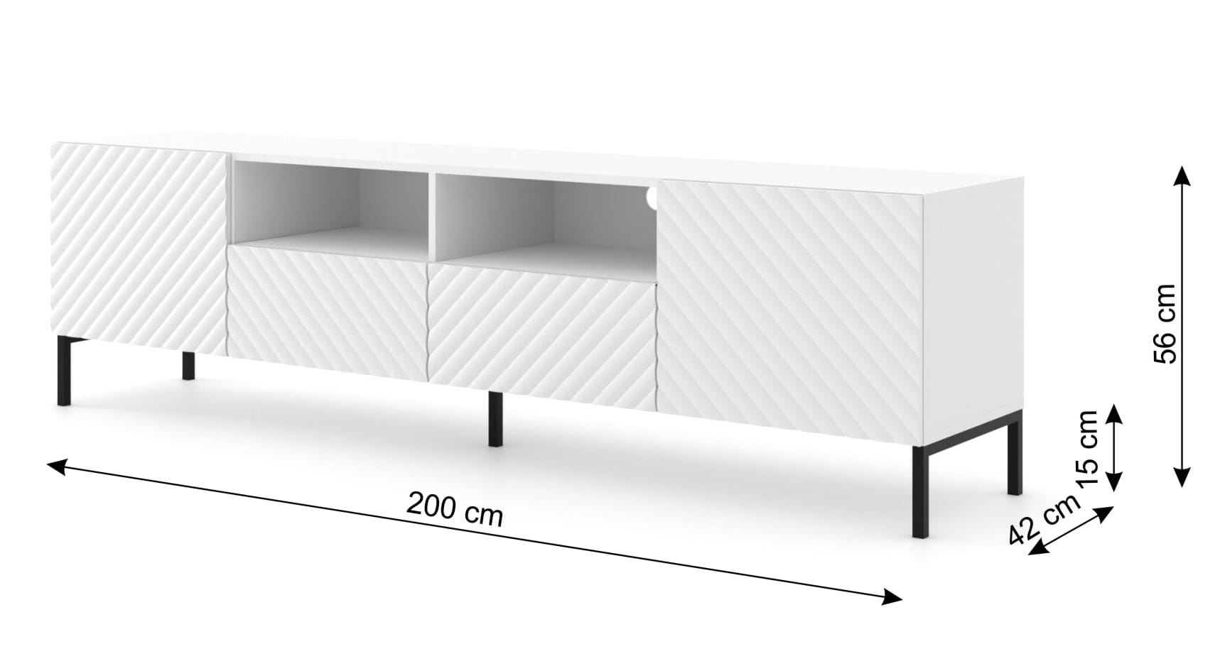Szafka RTV 200 cm, biała matowa do salonu Surf 2D2S