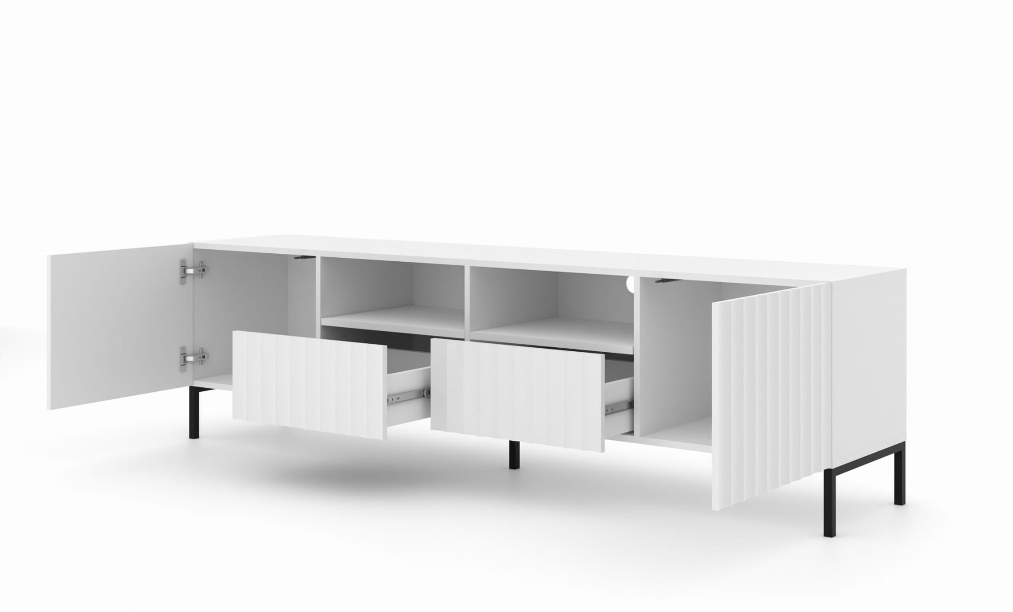 Szafka RTV 200 cm, biała matowa do salonu na czarnych nogach Wave 2D2S
