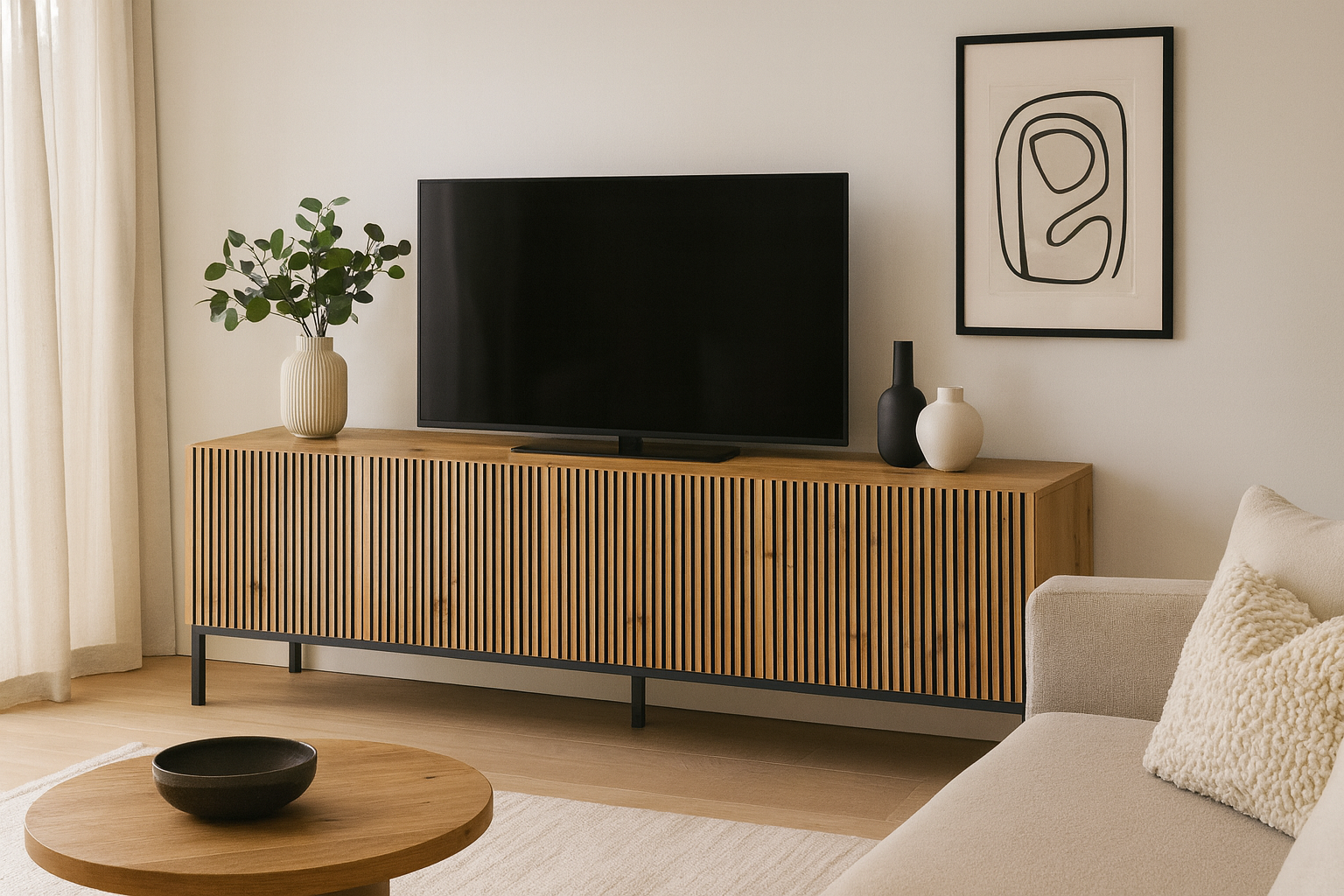 Szafka RTV z kolekcji Ravenna to idealne połączenie nowoczesnego designu i praktycznych rozwiązań. Wyposażona w cztery przestronne schowki, pozwala na wygodne przechowywanie sprzętu multimedialnego, akcesoriów czy domowych drobiazgów, utrzymując porządek w salonie.