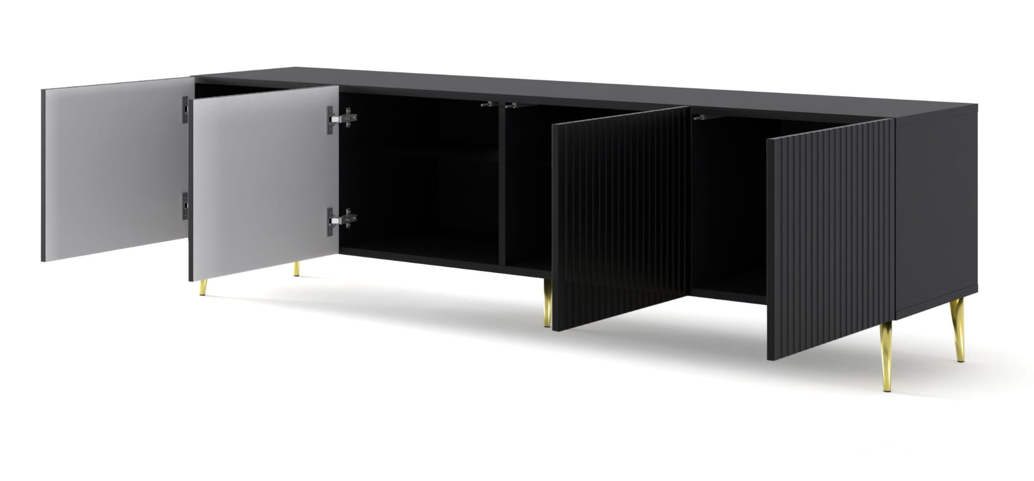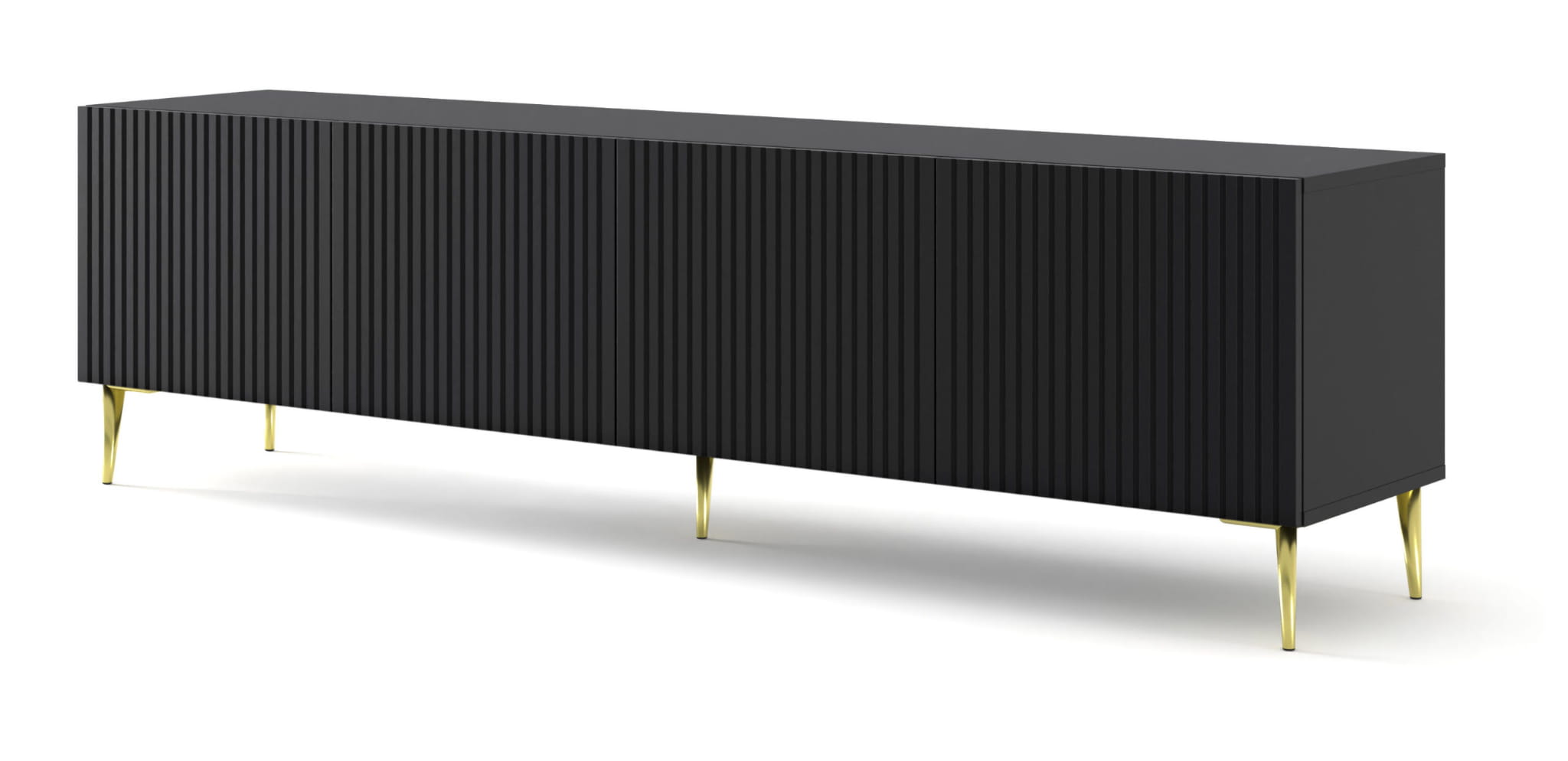 Szafka RTV 200 cm, na złotych szpilkach do salonu, czarna matowa Ravenna B