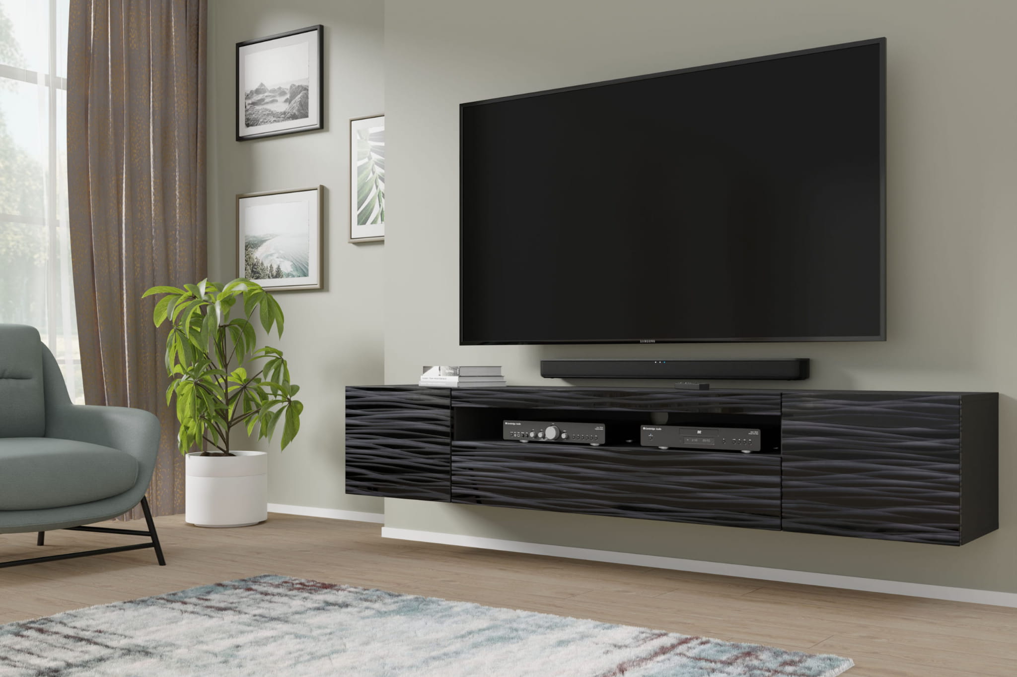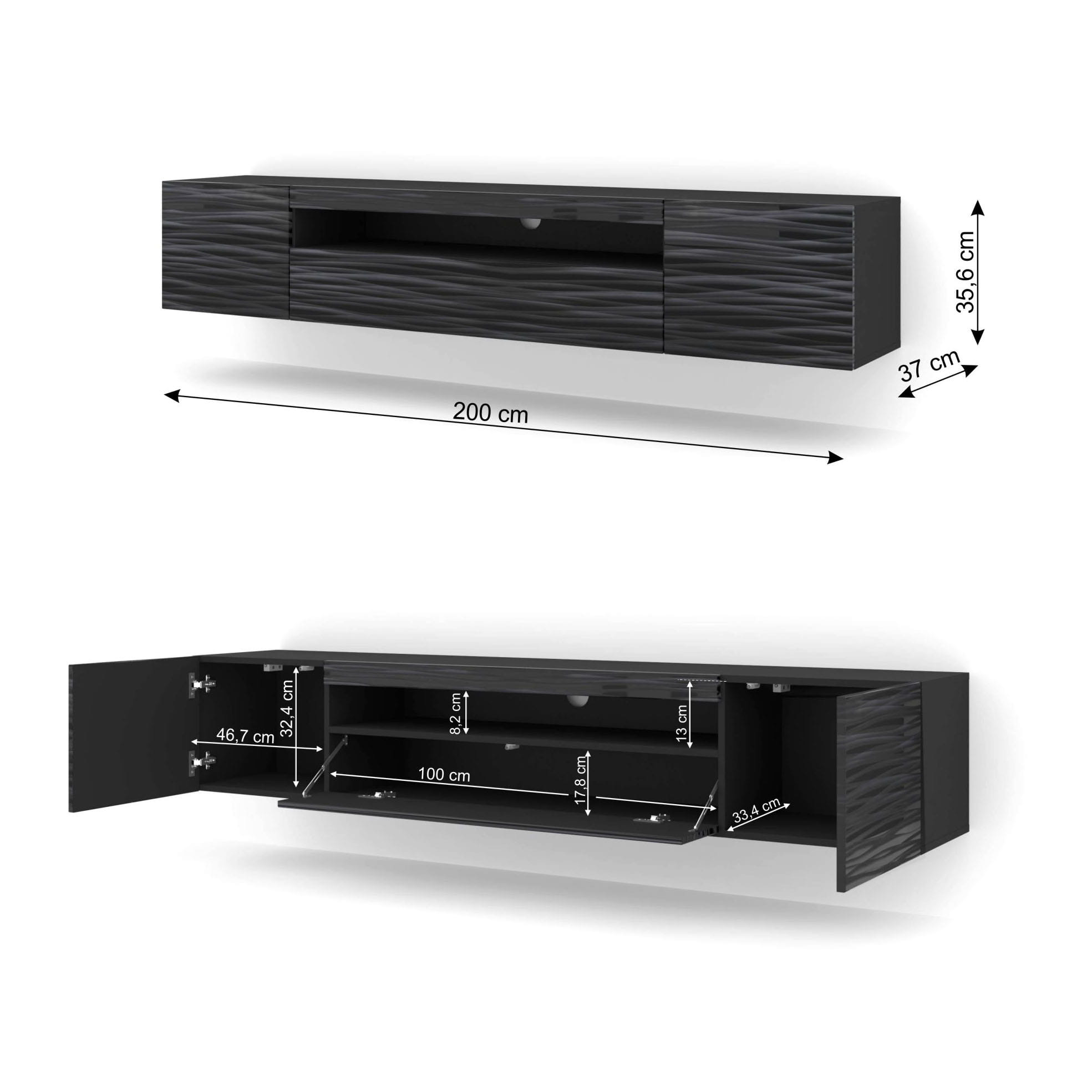 Szafka RTV Aura 200 cm uniwersalna wisząca stojąca czarna sahara