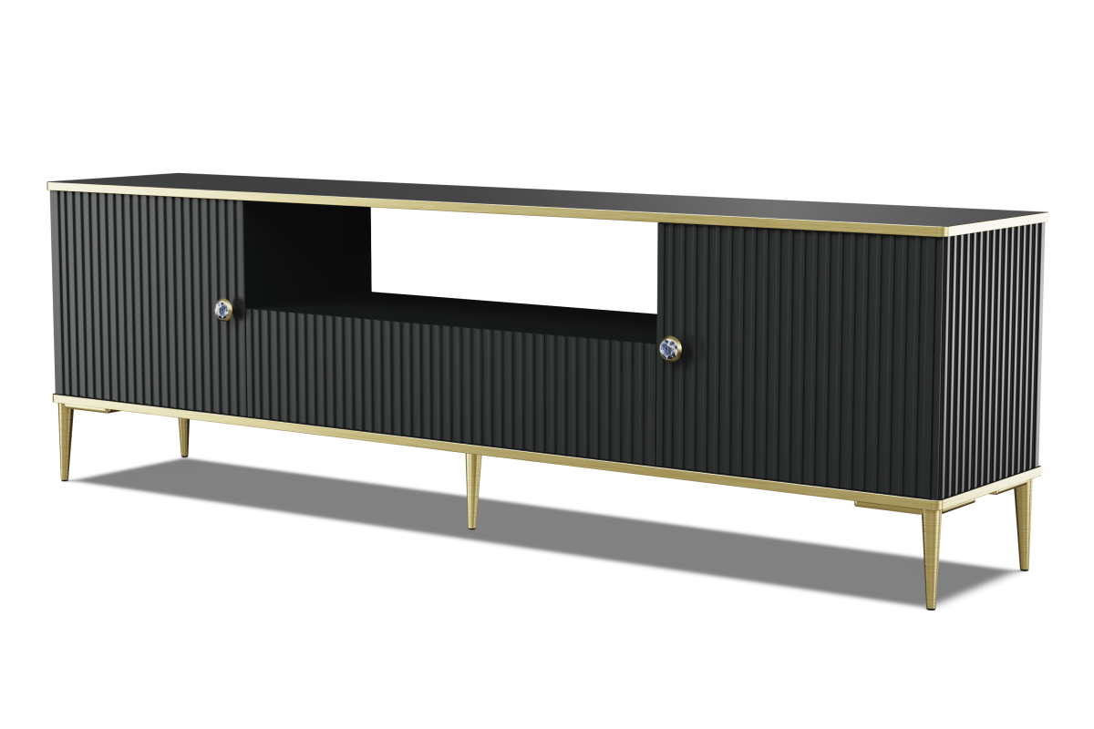 Szafka RTV czarna matowa, 180 cm do salonu Petra 2D1S