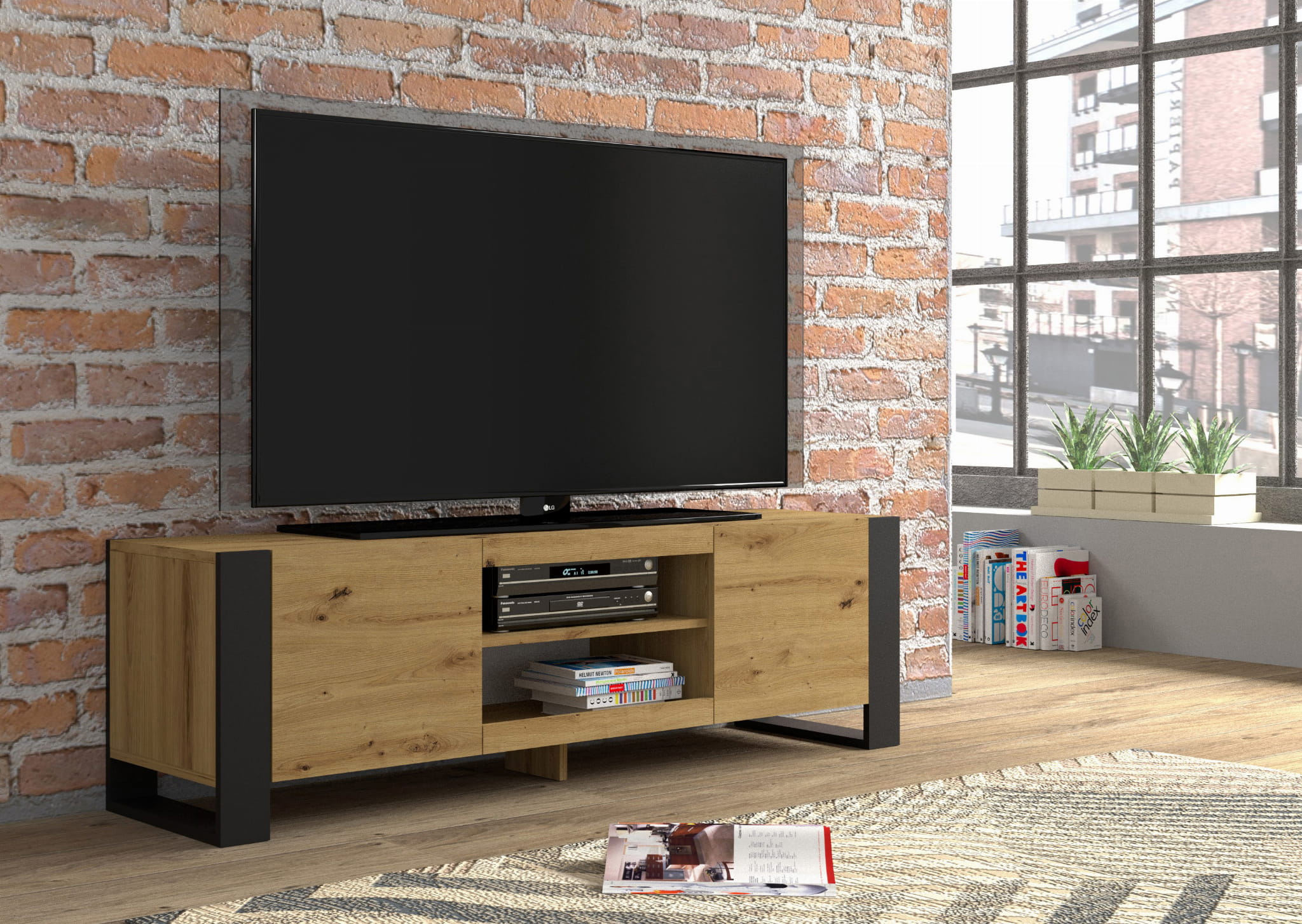 Szafka RTV Mondi w kolorze dąb artisan to połączenie nowoczesnego designu z praktycznymi rozwiązaniami, które idealnie sprawdzą się w każdym wnętrzu.