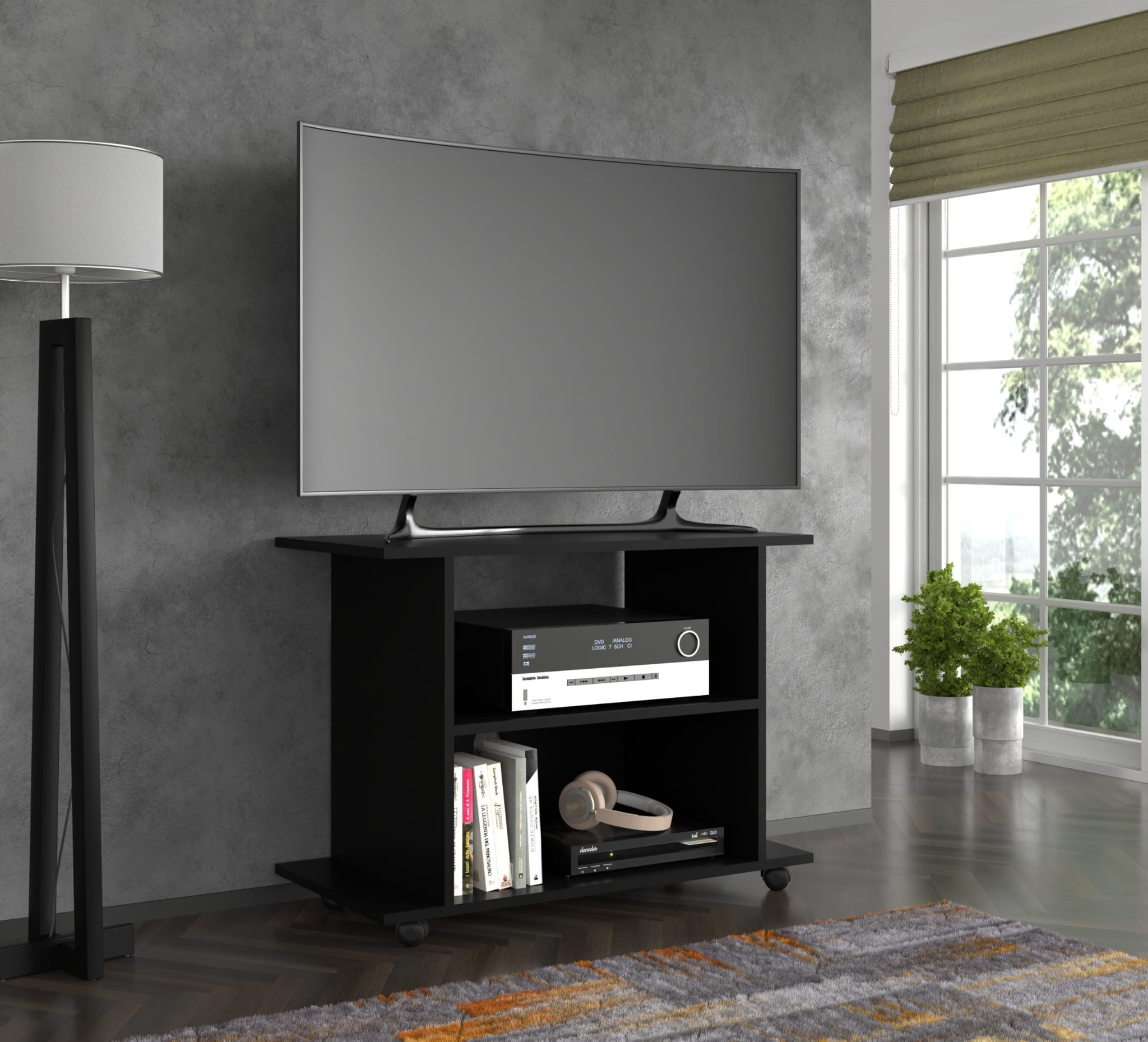 Szafka RTV na kółkach do salonu, czarny matowy Yogi