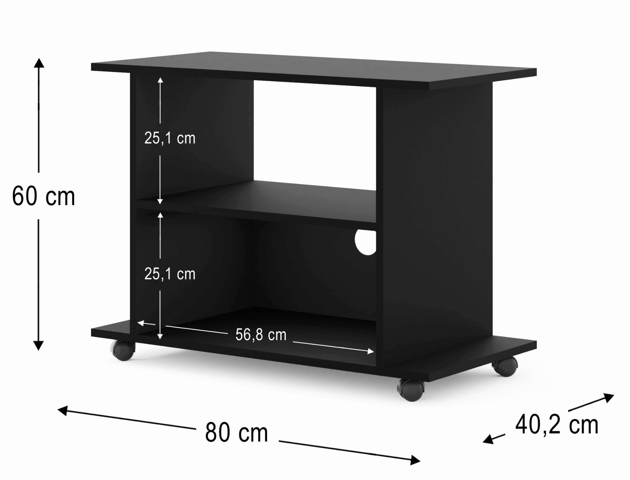 Szafka RTV na kółkach do salonu 80 cm, czarny matowy Yogi
