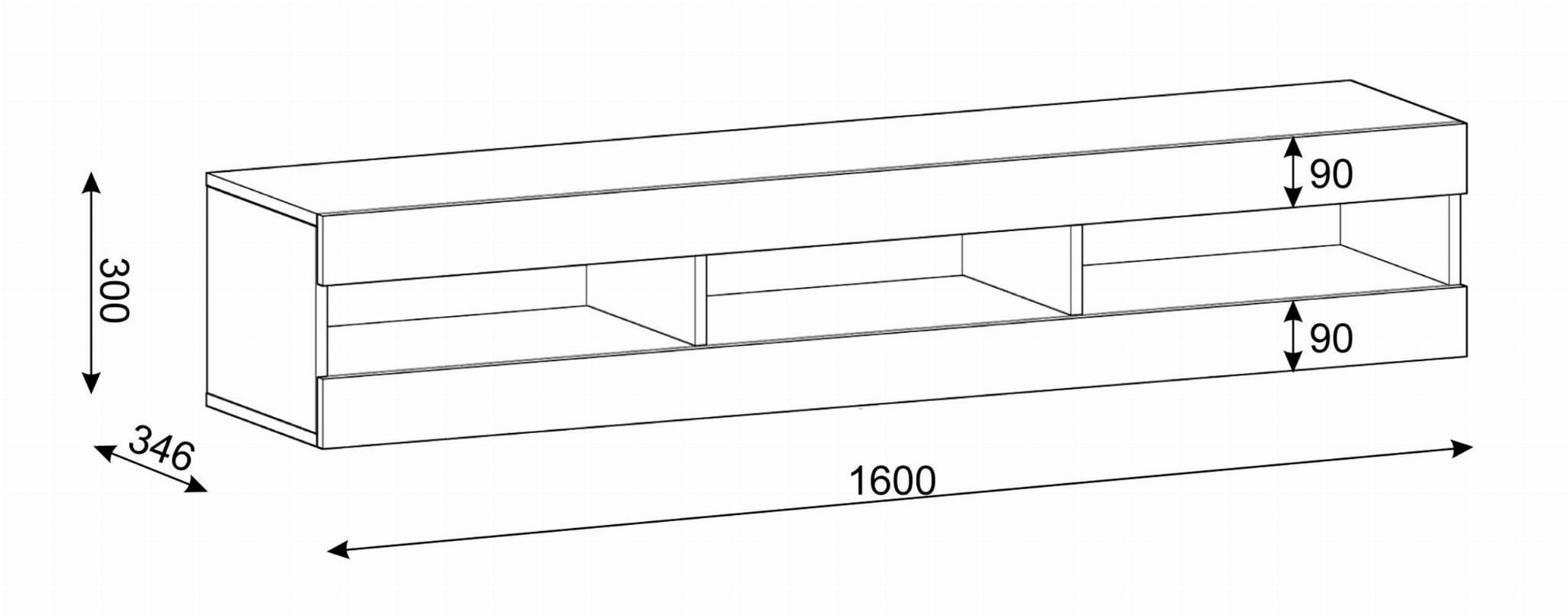 Trzy otwarte półki – idealne do przechowywania sprzętu RTV, konsol, dekoderów czy akcesoriów.