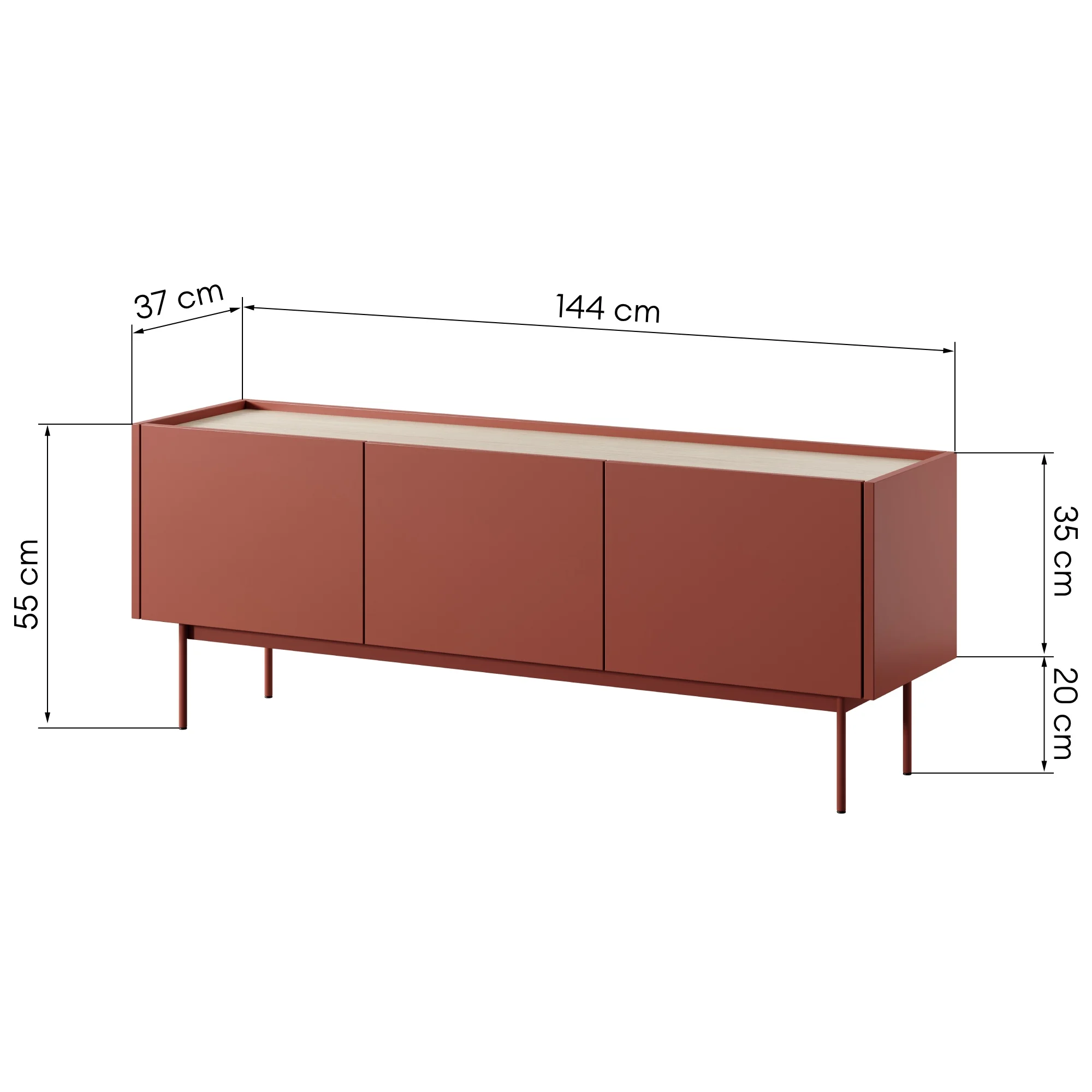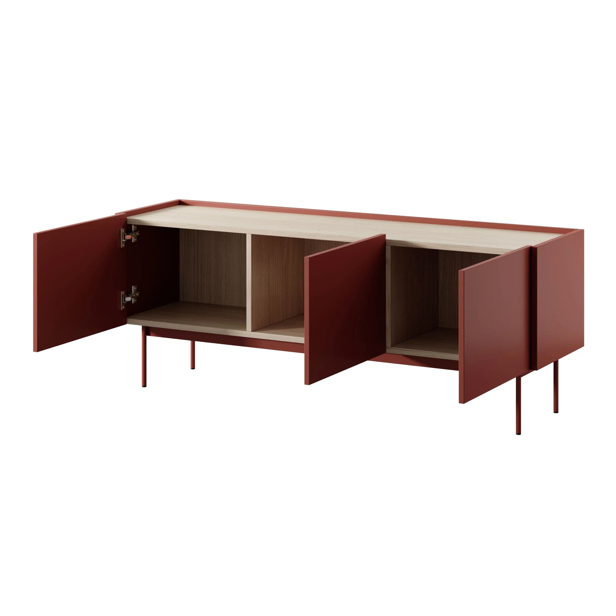 Szafka RTV trzydrzwiowa, ceramiczna czerwona Color