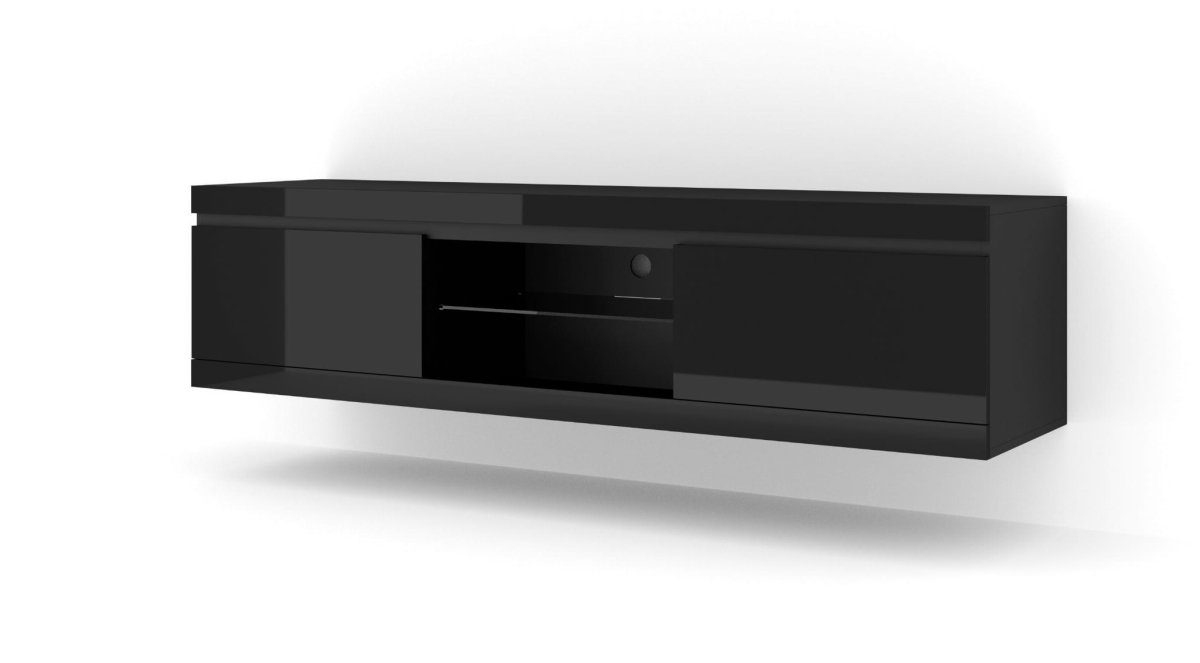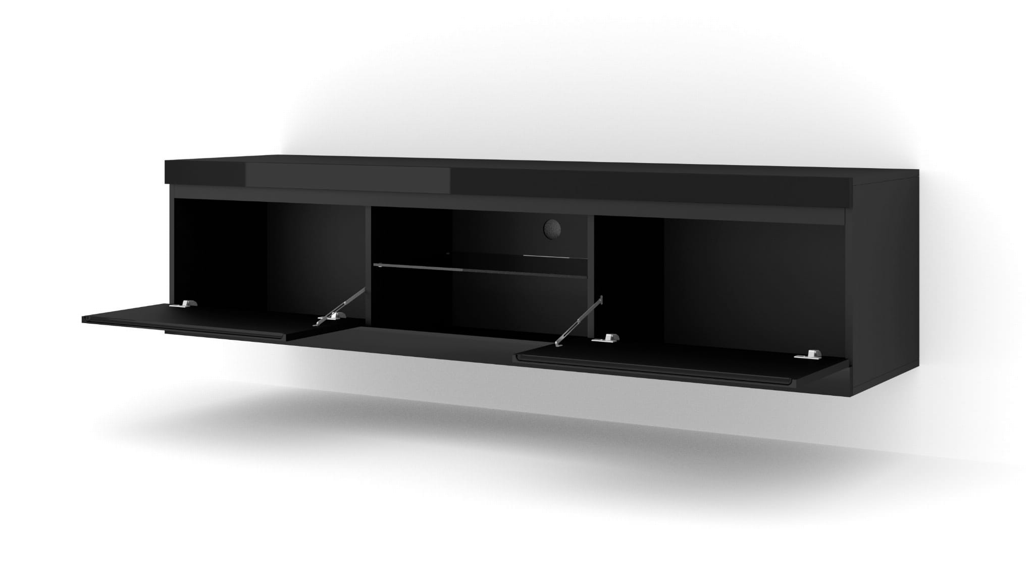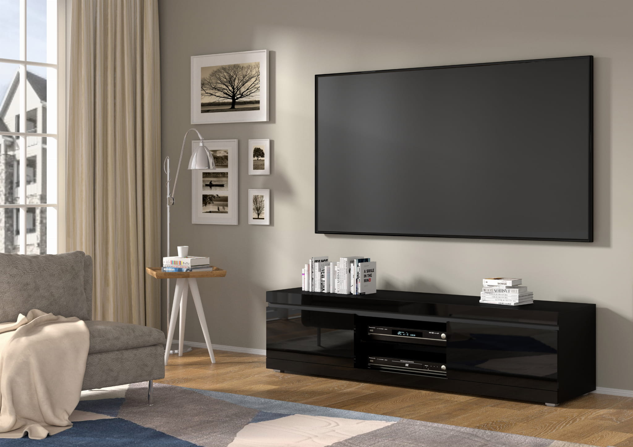 Szafka RTV uniwersalna, czarny matowy/czarny połysk, 180 cm do salonu Net