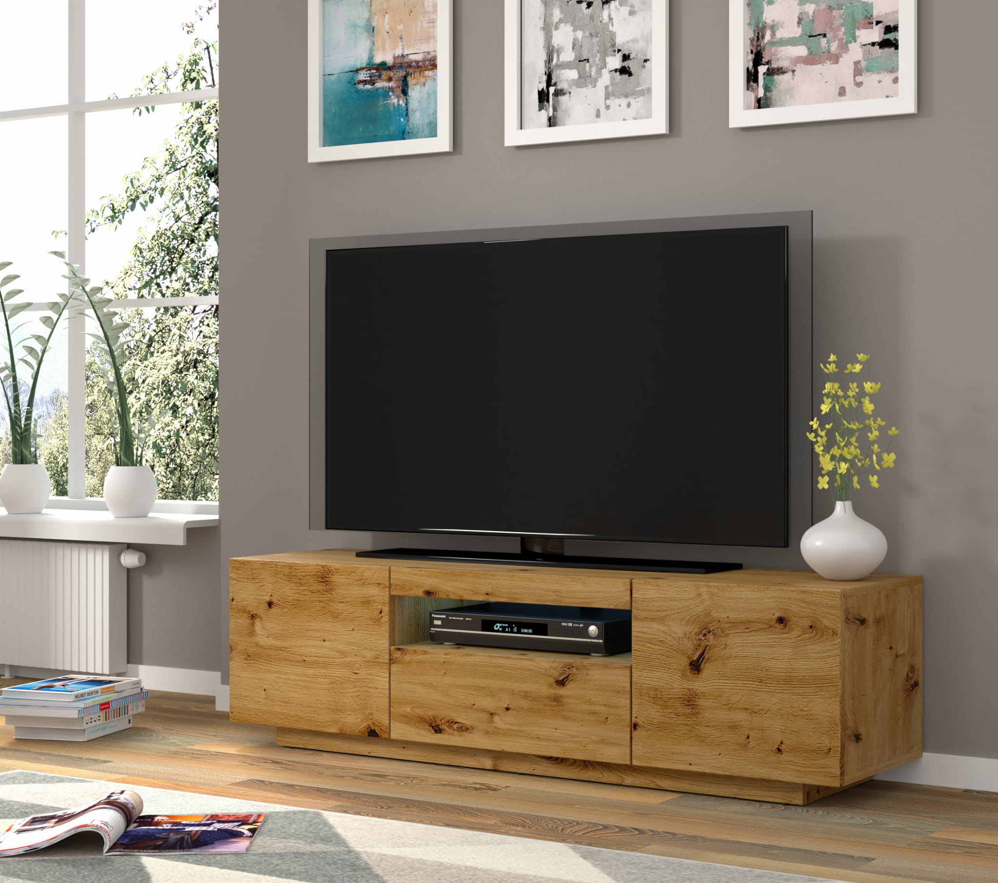 Szafka RTV uniwersalna dąb artisan do salonu 150 cm, Aura