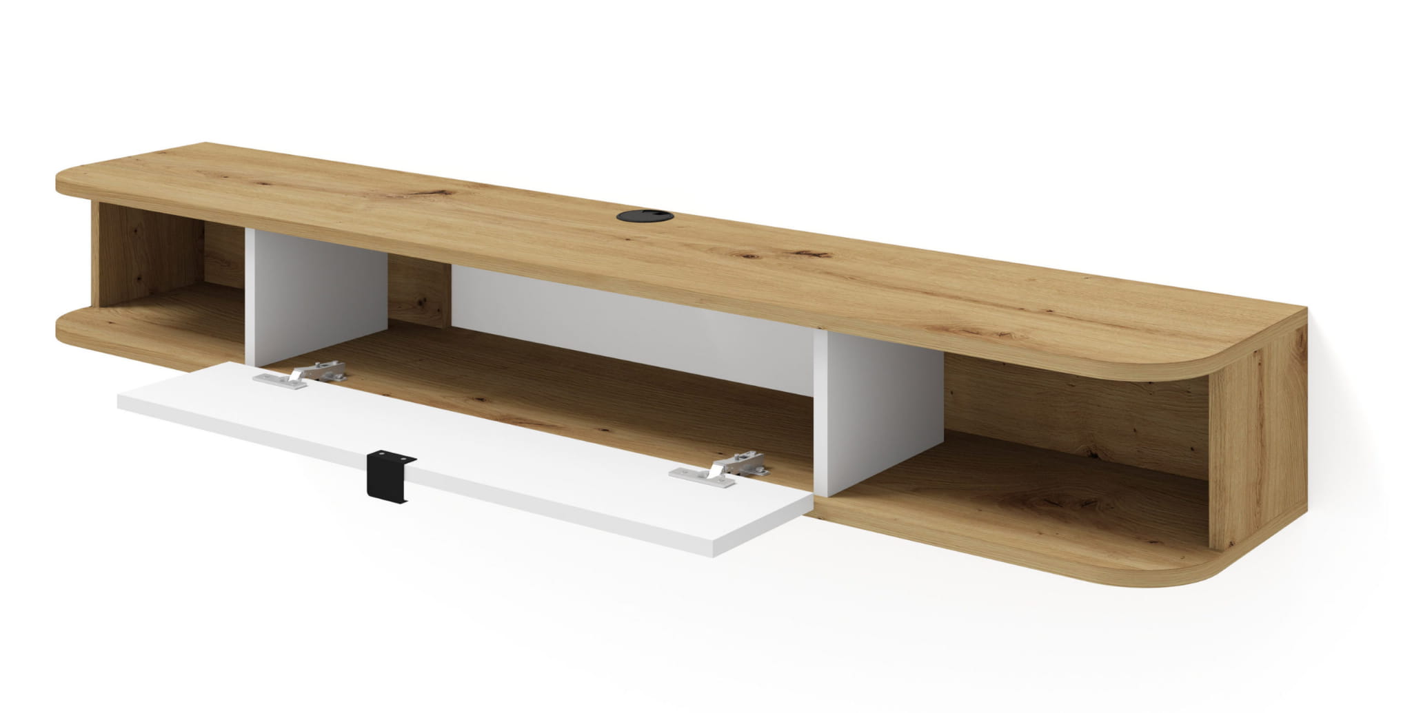 Szafka RTV wisząca 156 cm, do salonu dąb artisan/biały matowy Icarus