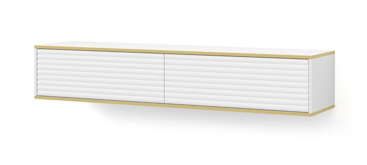 Szafka RTV wisząca 180 cm, biała matowa z frontem frezowanym Subi