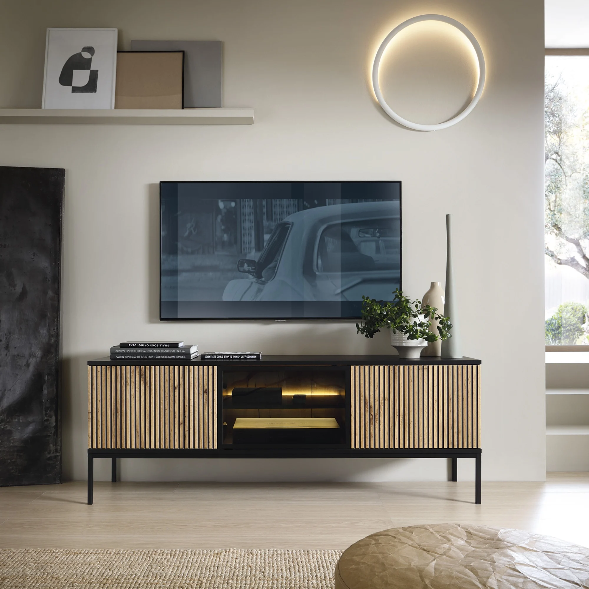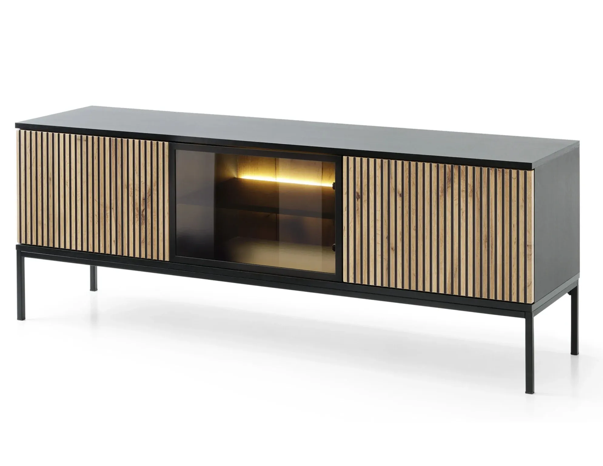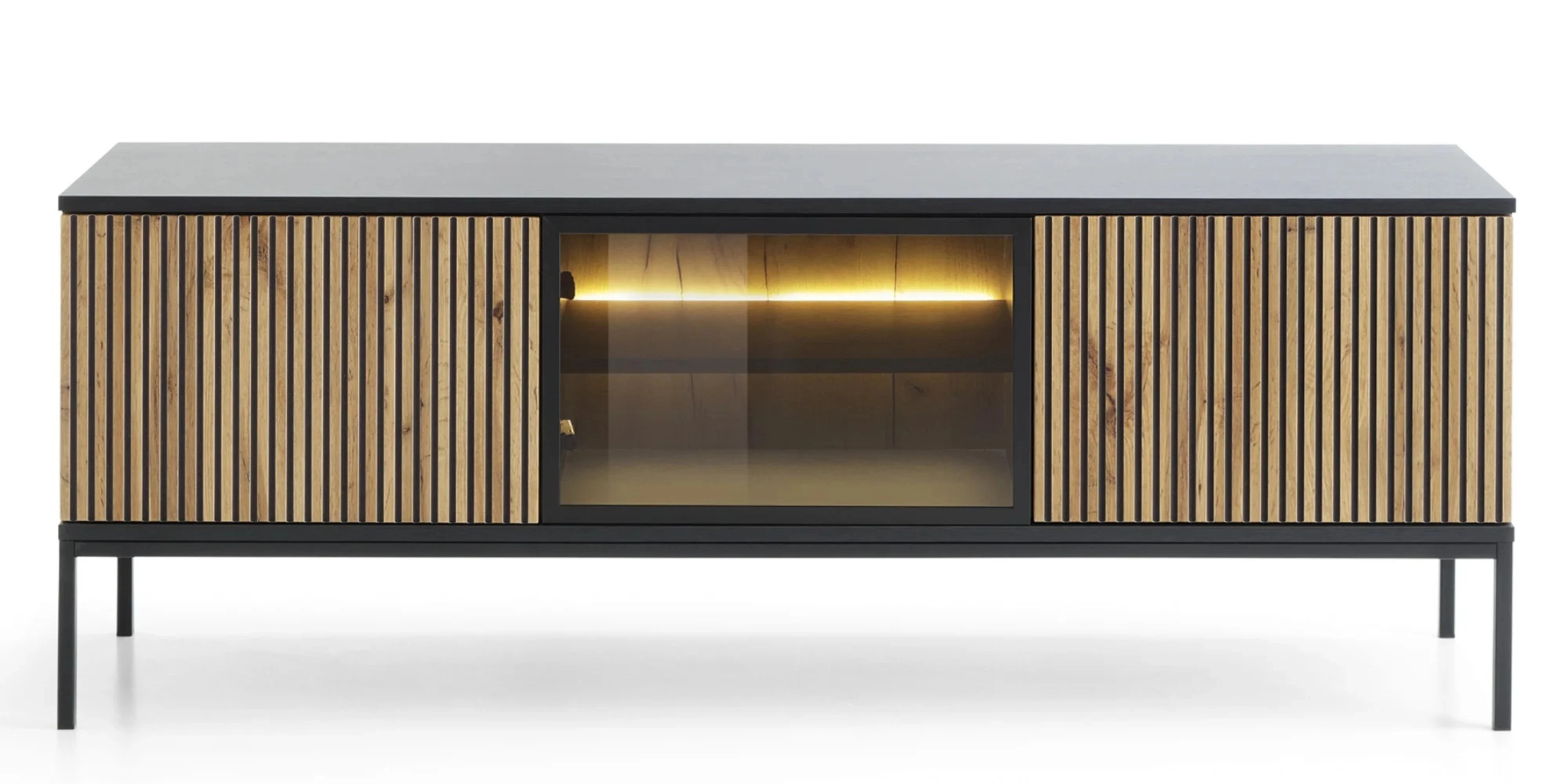 Szafka RTV z oświetleniem led, ryflowanym frontem Sento