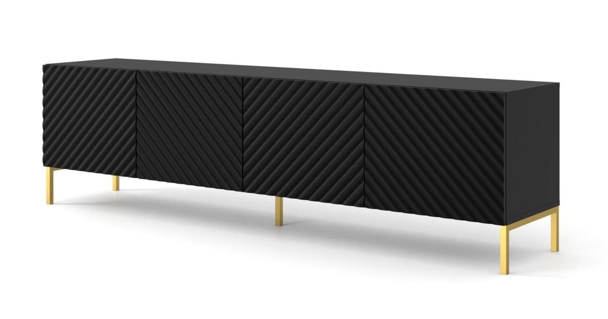 Szafka RTV SURF czterodrzwiowa z frezowanymi frontami i złotymi nóżkami