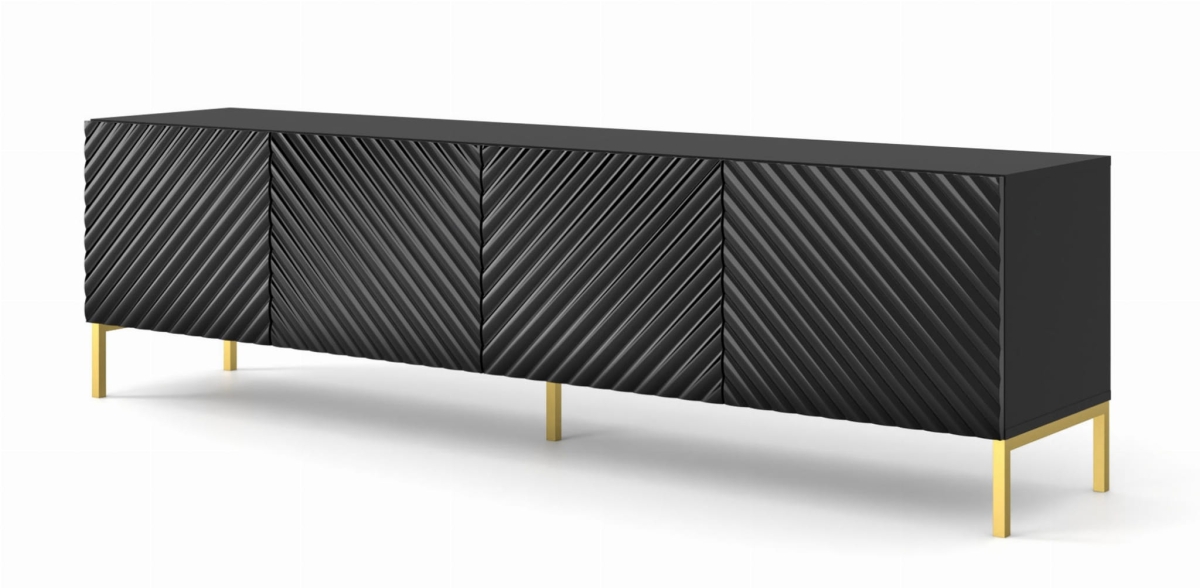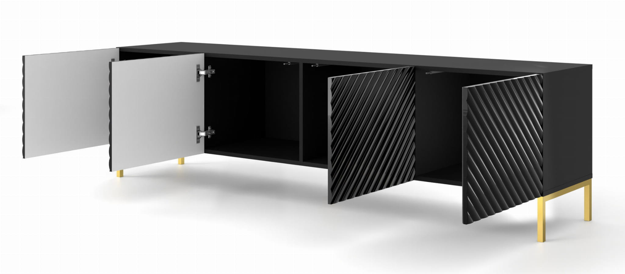 Szafka czterodzwiowa RTV 200 cm, czarna połysk do salonu, Surf 4D