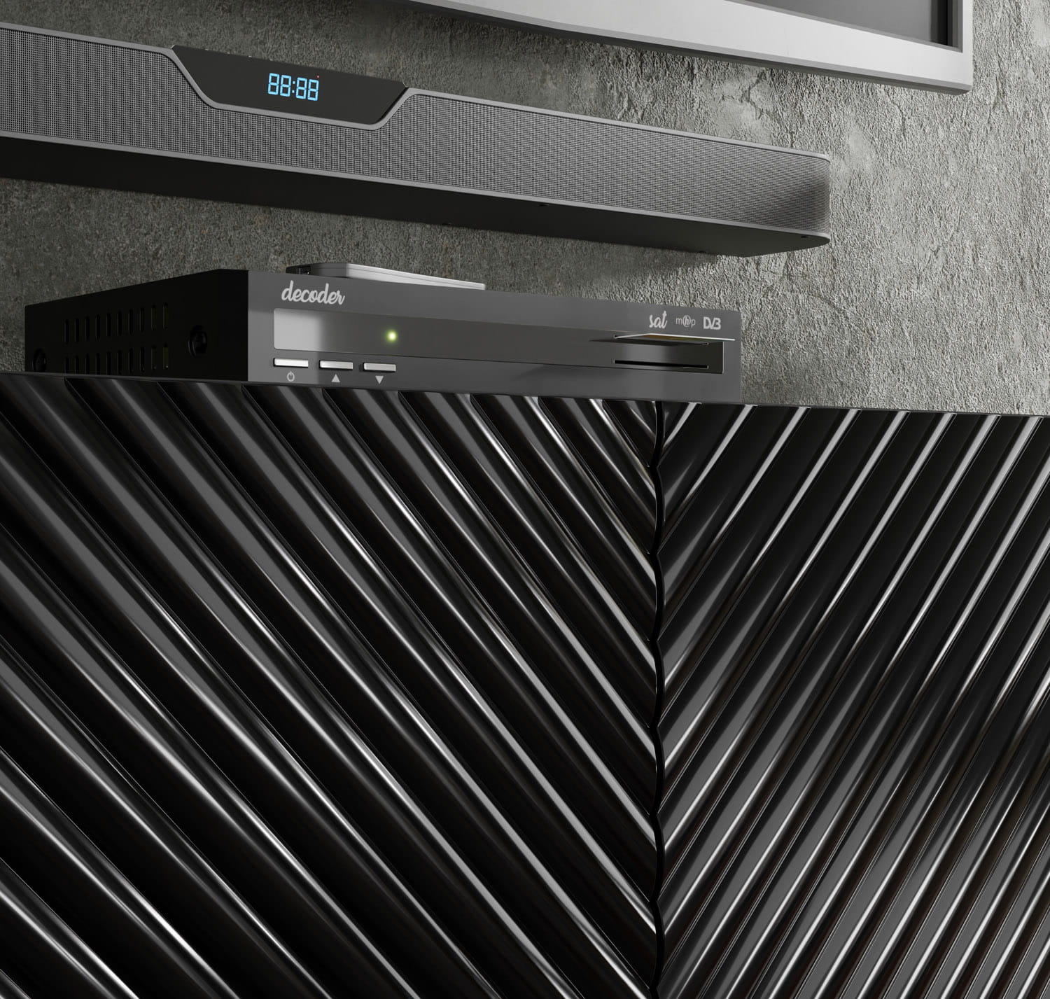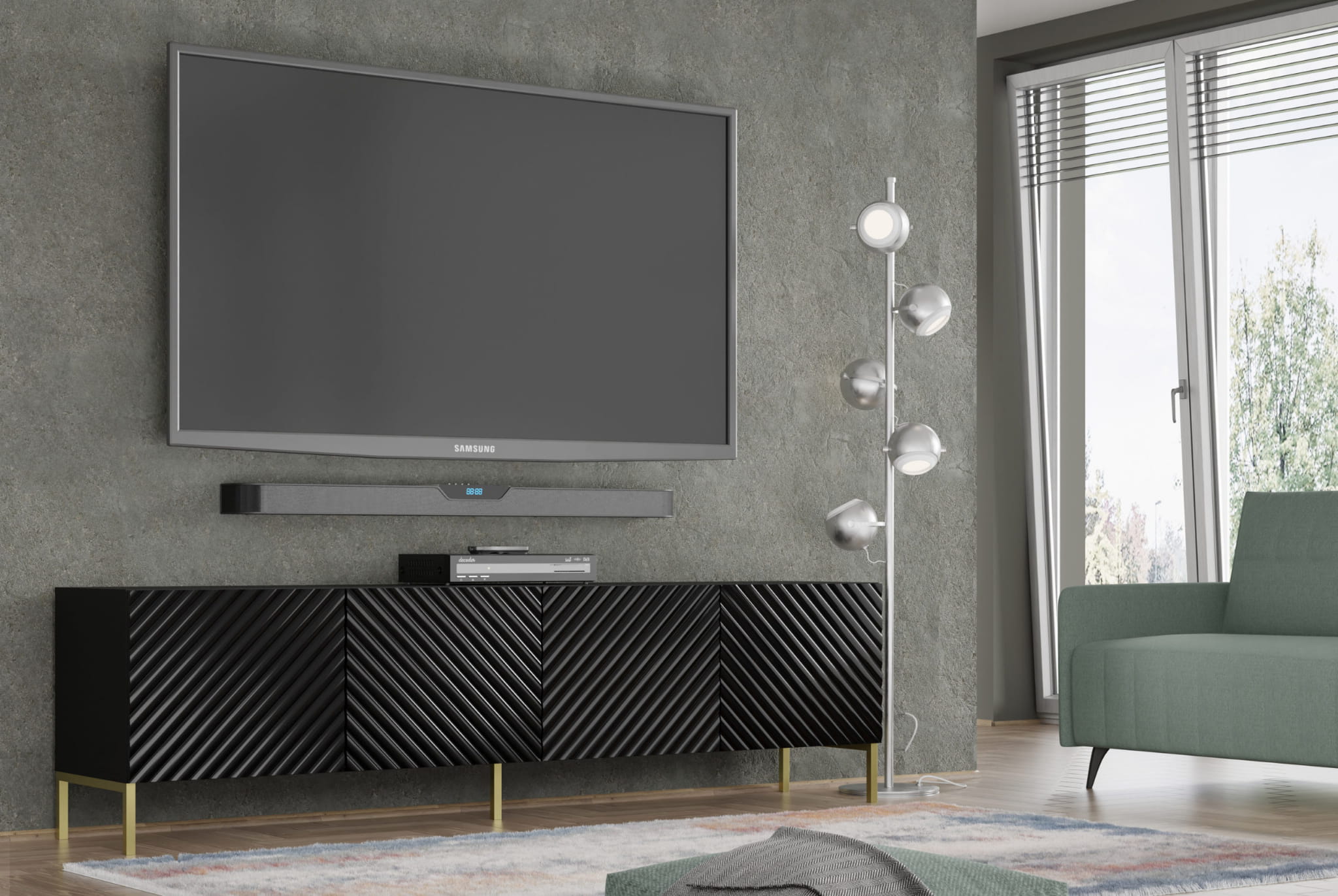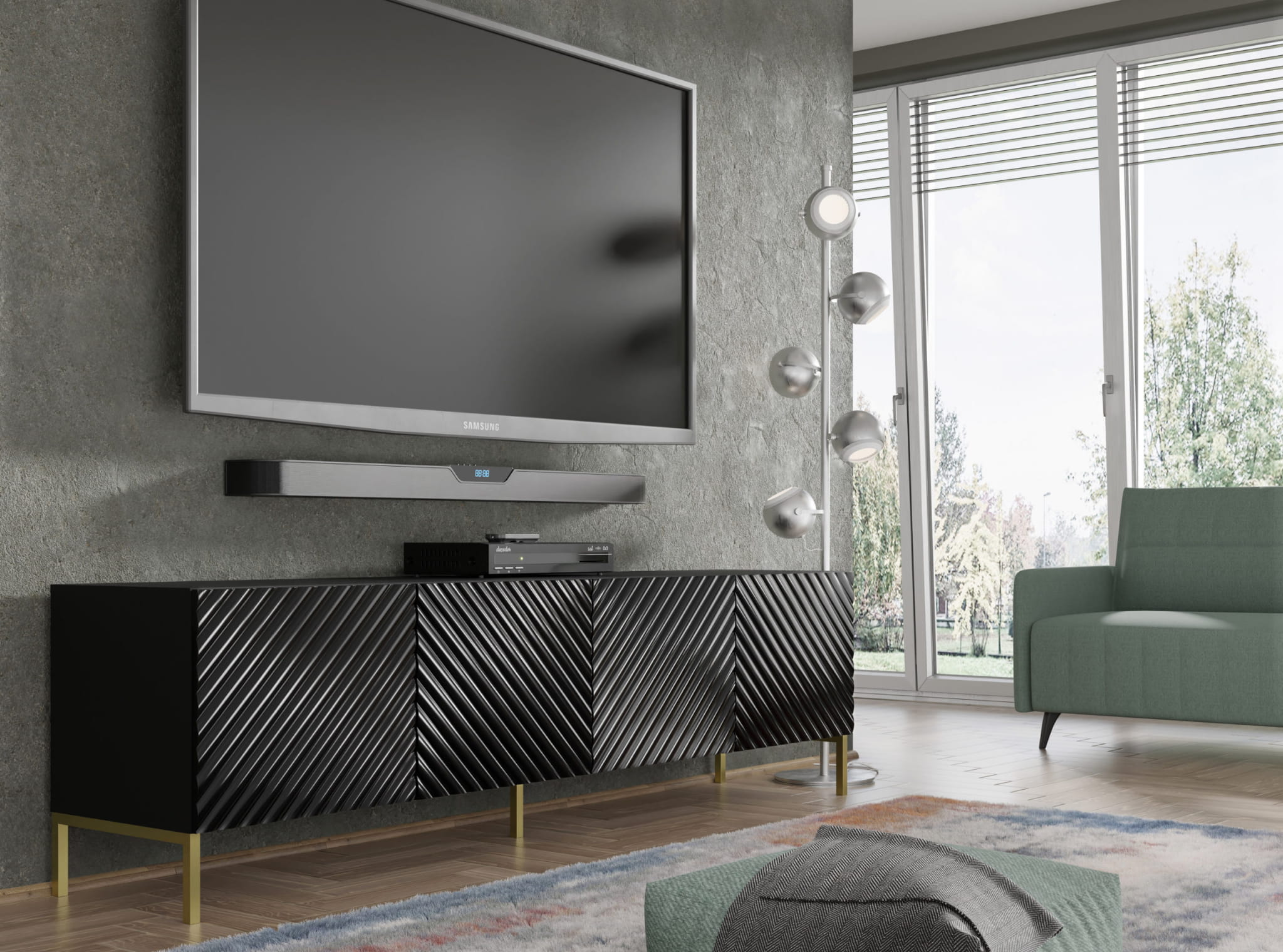 Szafka RTV SURF to połączenie funkcjonalności z luksusowym designem, który odmieni Twoje wnętrze.