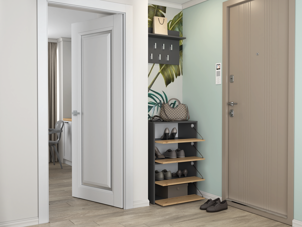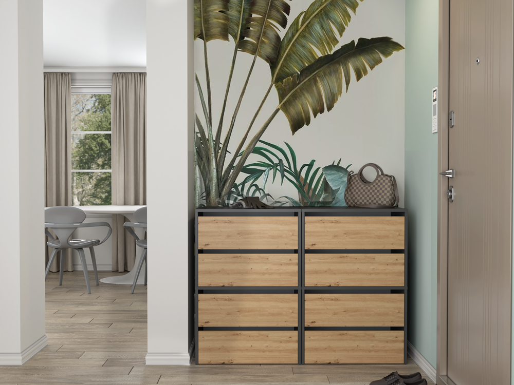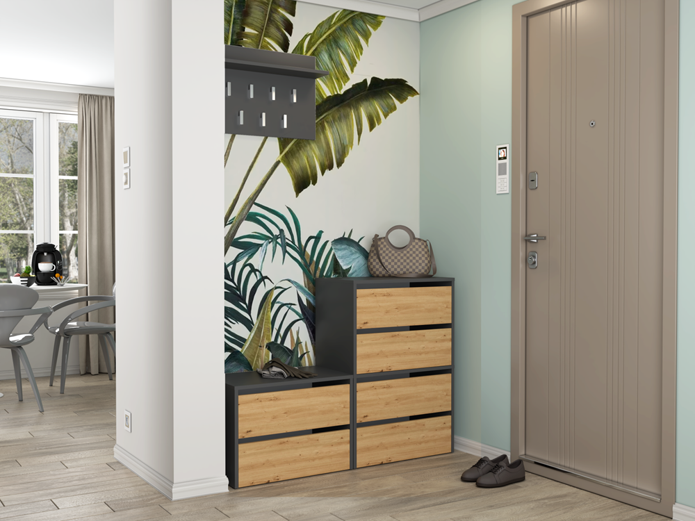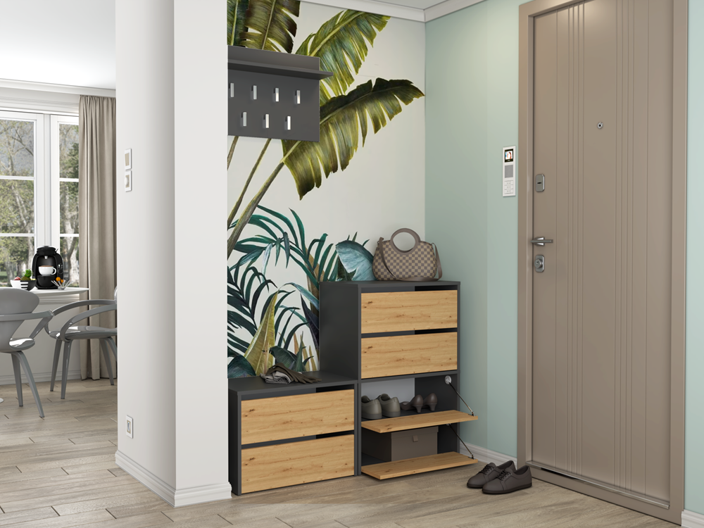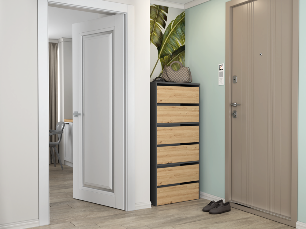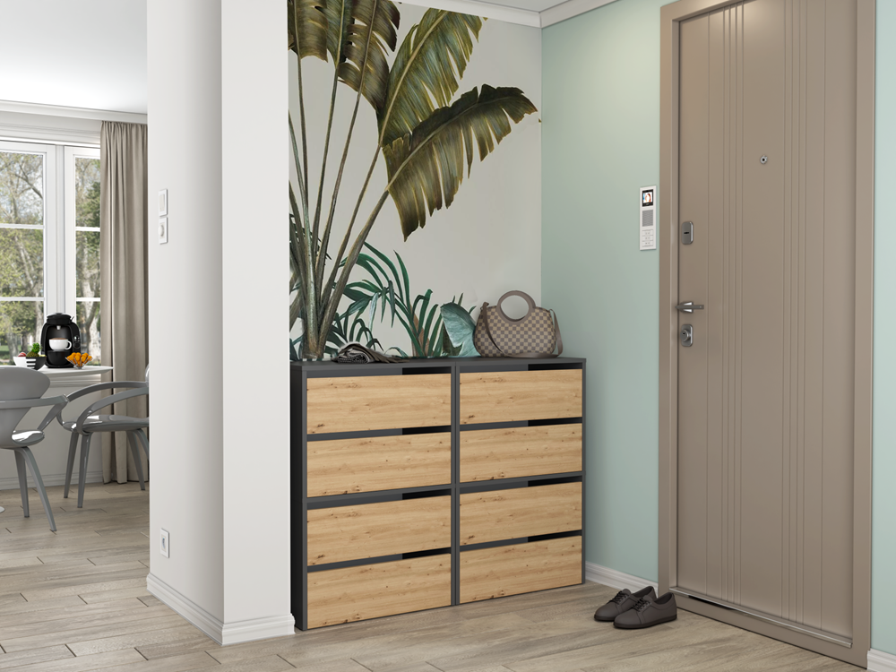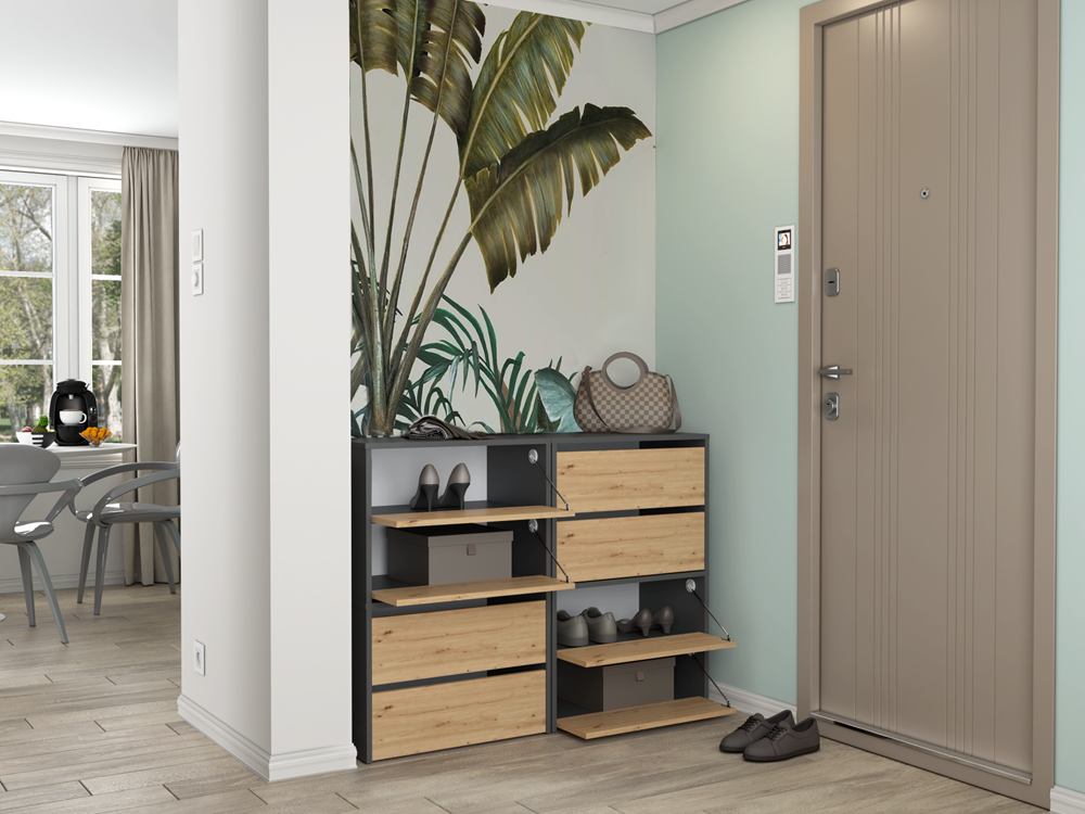 Szafka dąb artisan/antracyt na obuwie z dwoma półkami, do przedpokoju Modo 1