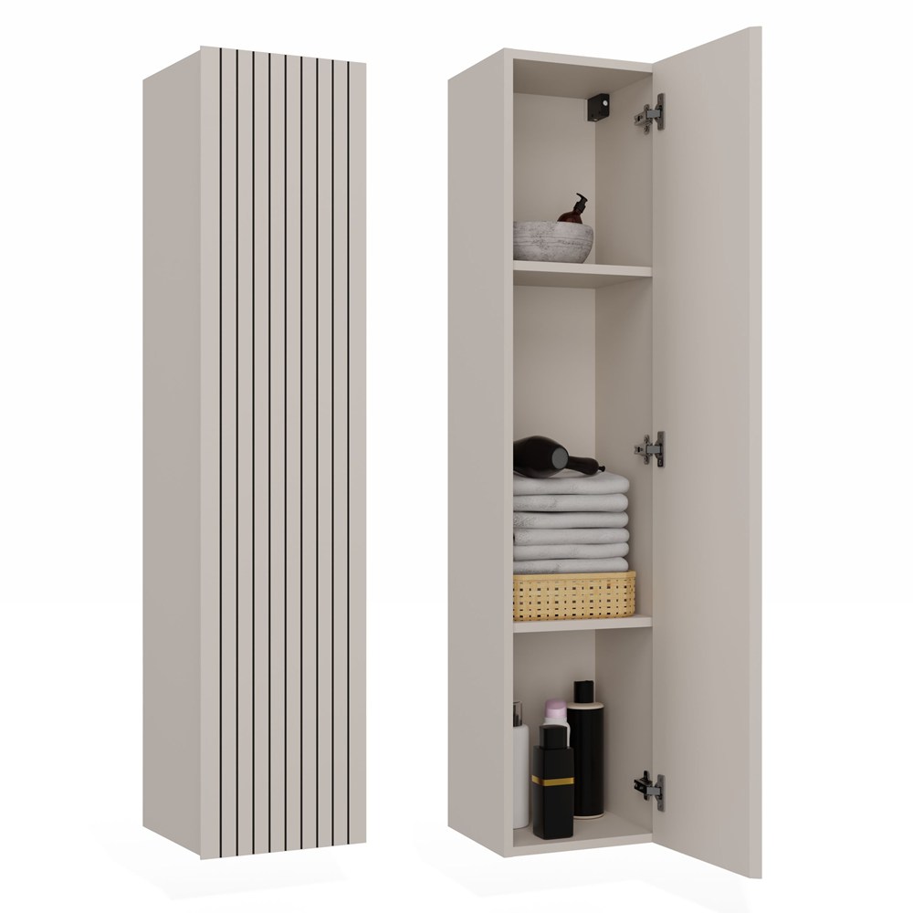 Wnętrze słupka zostało podzielone na trzy praktyczne strefy, dzięki czemu łatwo uporządkujesz kosmetyki, ręczniki, zapasowe środki czystości i inne niezbędne akcesoria. Kompaktowa forma i funkcjonalny układ półek pozwalają maksymalnie wykorzystać dostępną przestrzeń, nawet w mniejszych wnętrzach.