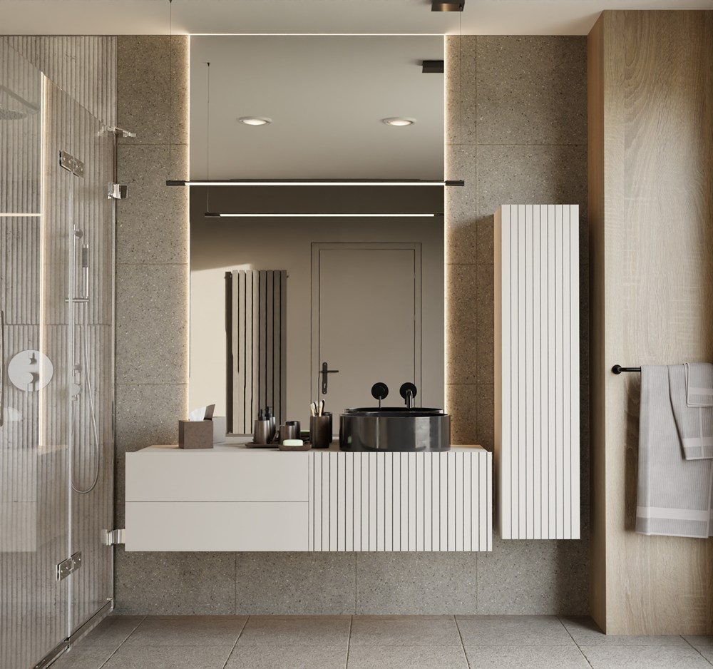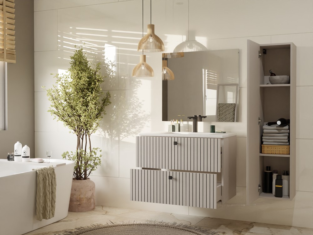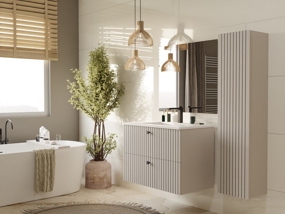 Szafka łazienkowa TIGO 1D w kolorze kaszmir to połączenie nowoczesnej estetyki i praktycznego podejścia do organizacji przestrzeni. Subtelny, ciepły odcień doskonale wpisuje się w modne aranżacje łazienek, a ryflowany front nadaje meblowi dekoracyjny, stylowy charakter.