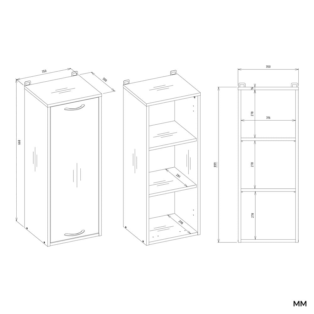 Szafka łazienkowa wisząca 35 cm, biała matowa z 3 półkami Nina W1D