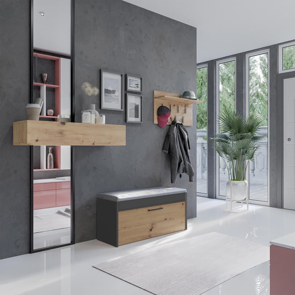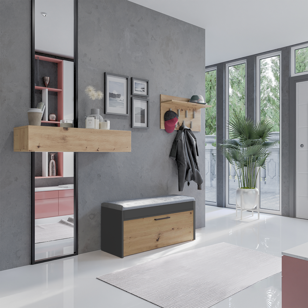 Szafka na buty z siedziskiem, dąb artisan/antracyt Parma do twojego przedpokoju