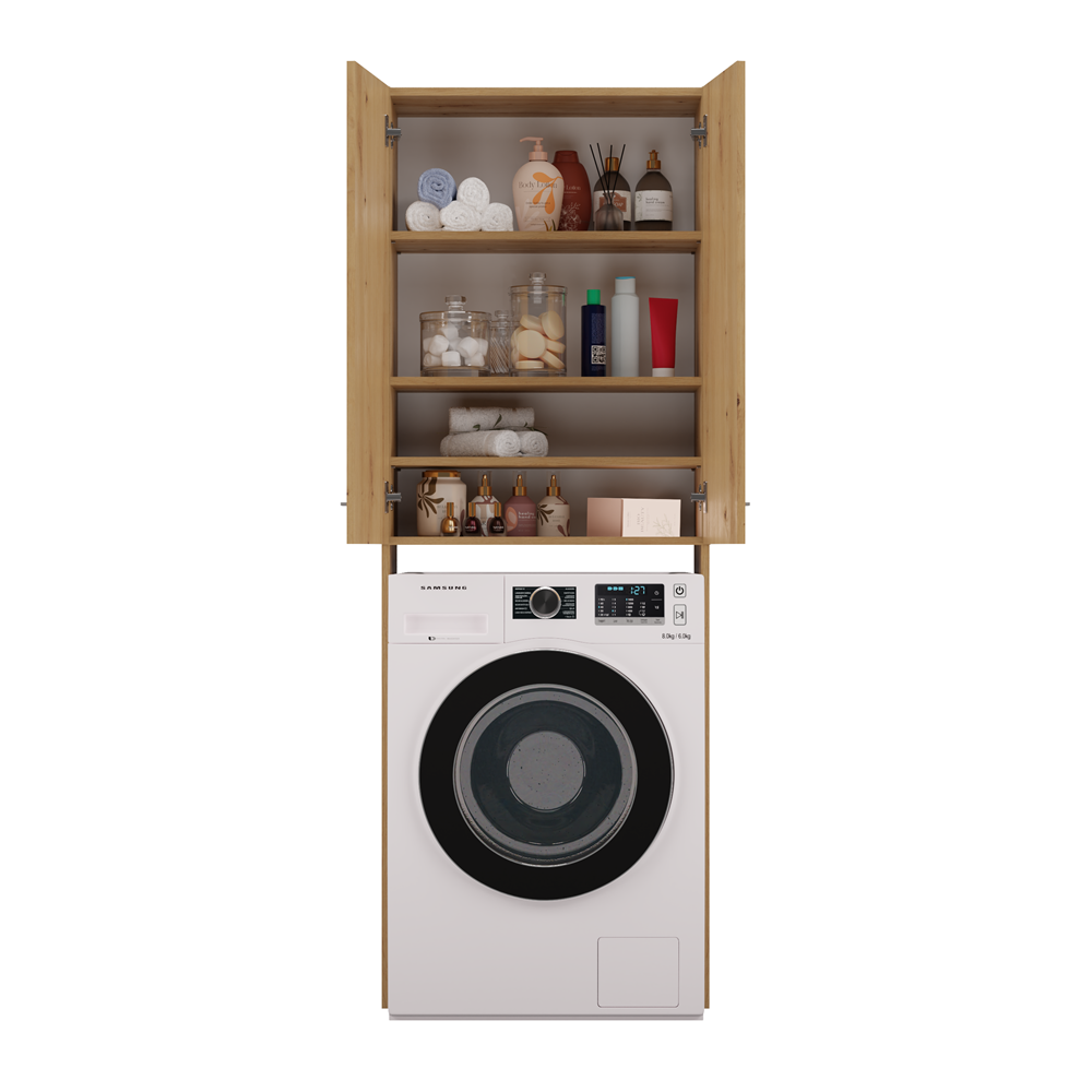 Wykonany z trwałej płyty laminowanej 16 mm i wyposażony w 4 półki ukryte za drzwiczkami, pomoże Ci w utrzymaniu porządku wśród ręczników, kosmetyków i środków czystości.