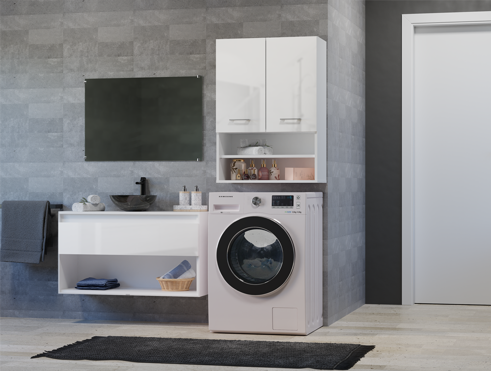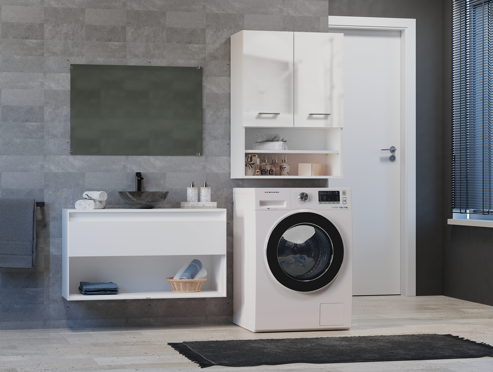 To mebel zaprojektowany z myślą o funkcjonalności i trwałości, a jego kompaktowe wymiary pozwalają maksymalnie wykorzystać przestrzeń nad pralką bez utraty estetyki.