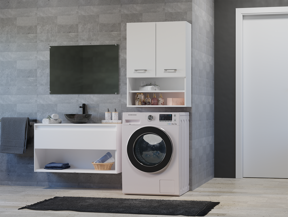 To mebel zaprojektowany z myślą o funkcjonalności i trwałości, a jego kompaktowe wymiary pozwalają maksymalnie wykorzystać przestrzeń nad pralką bez utraty estetyki.
