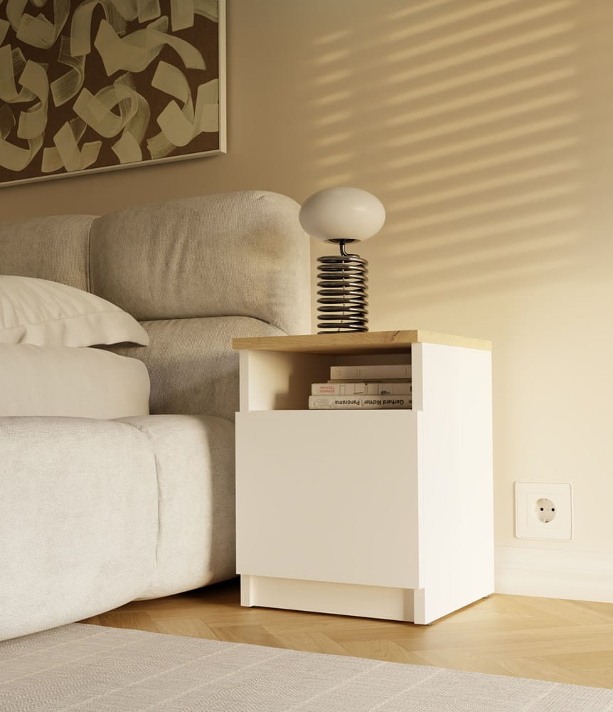 Szafka nocna 30 cm, biała matowa/dąb artisan Galax 30/1D