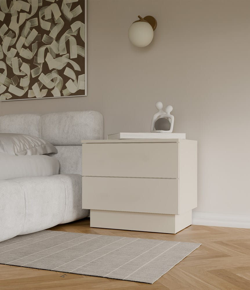 Szafka nocna 55 cm, kaszmir do sypialni, z dwoma szufladami Amber 2S