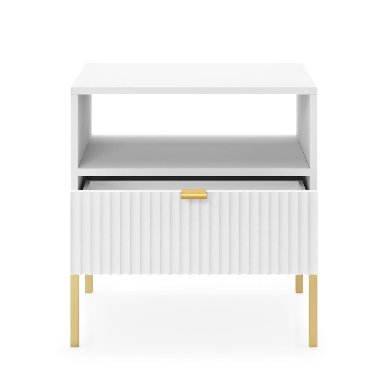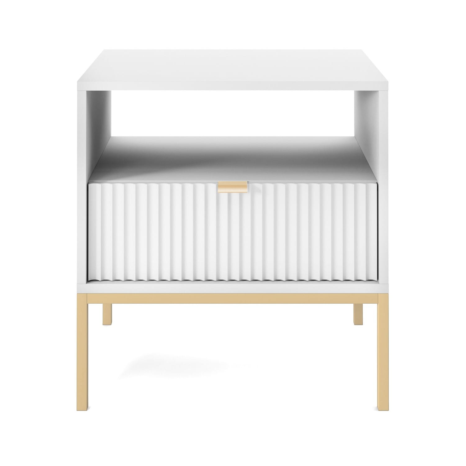 Szafka nocna ryflowana biała, z szufladą, Nova