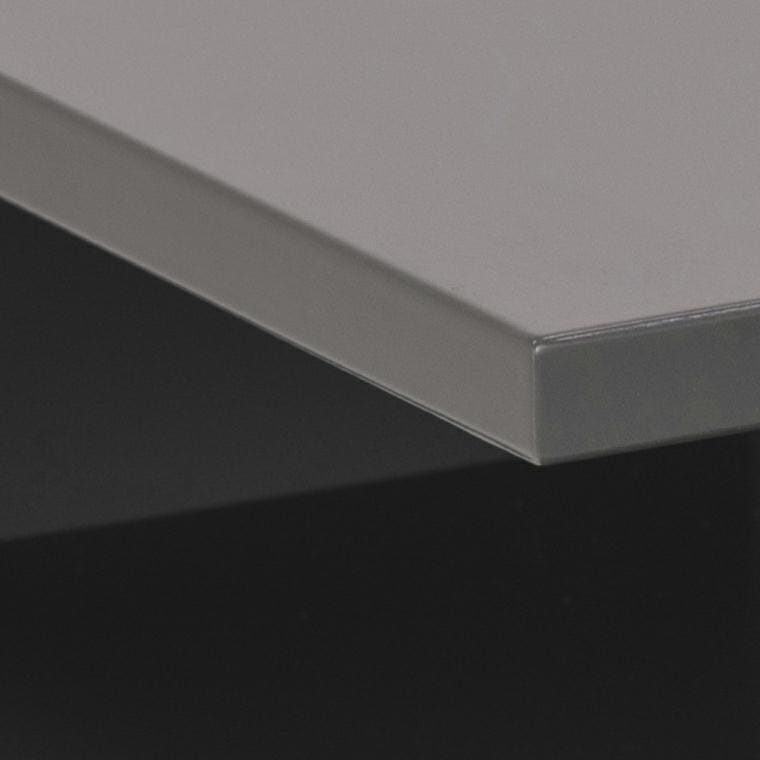 Szafka została zrobiona z drewna w kolorze ciemnoszarym.