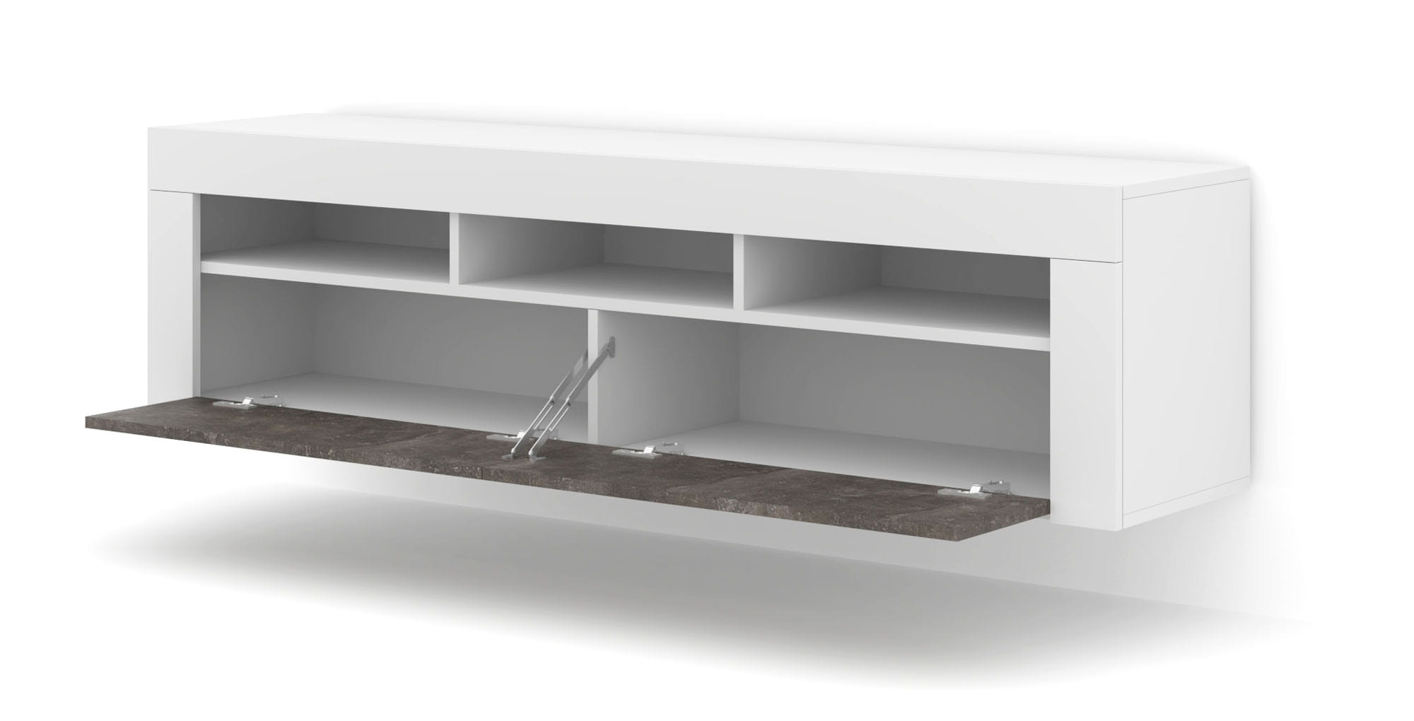 Szafka uniwersalna RTV 160 cm, do salonu, biała matowa/beton ciemny Moreno