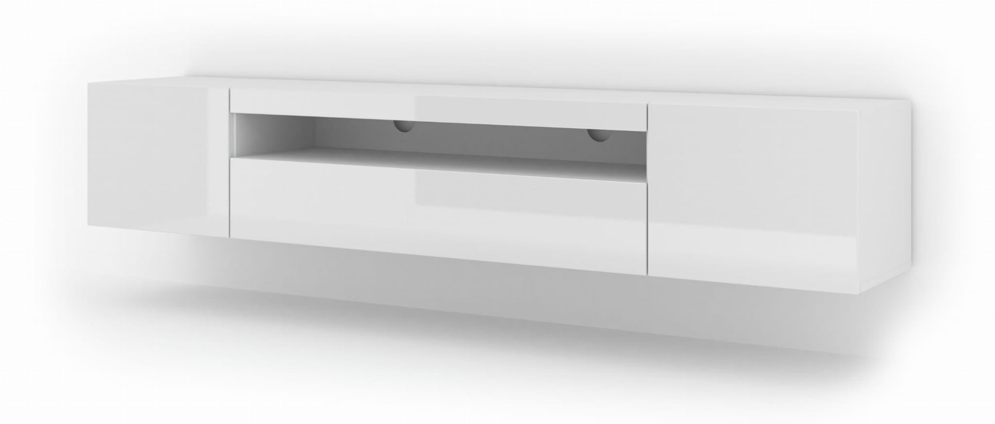 Szafka uniwersalna RTV 200 cm z oświetleniem LED, do salonu, biała połysk Aura