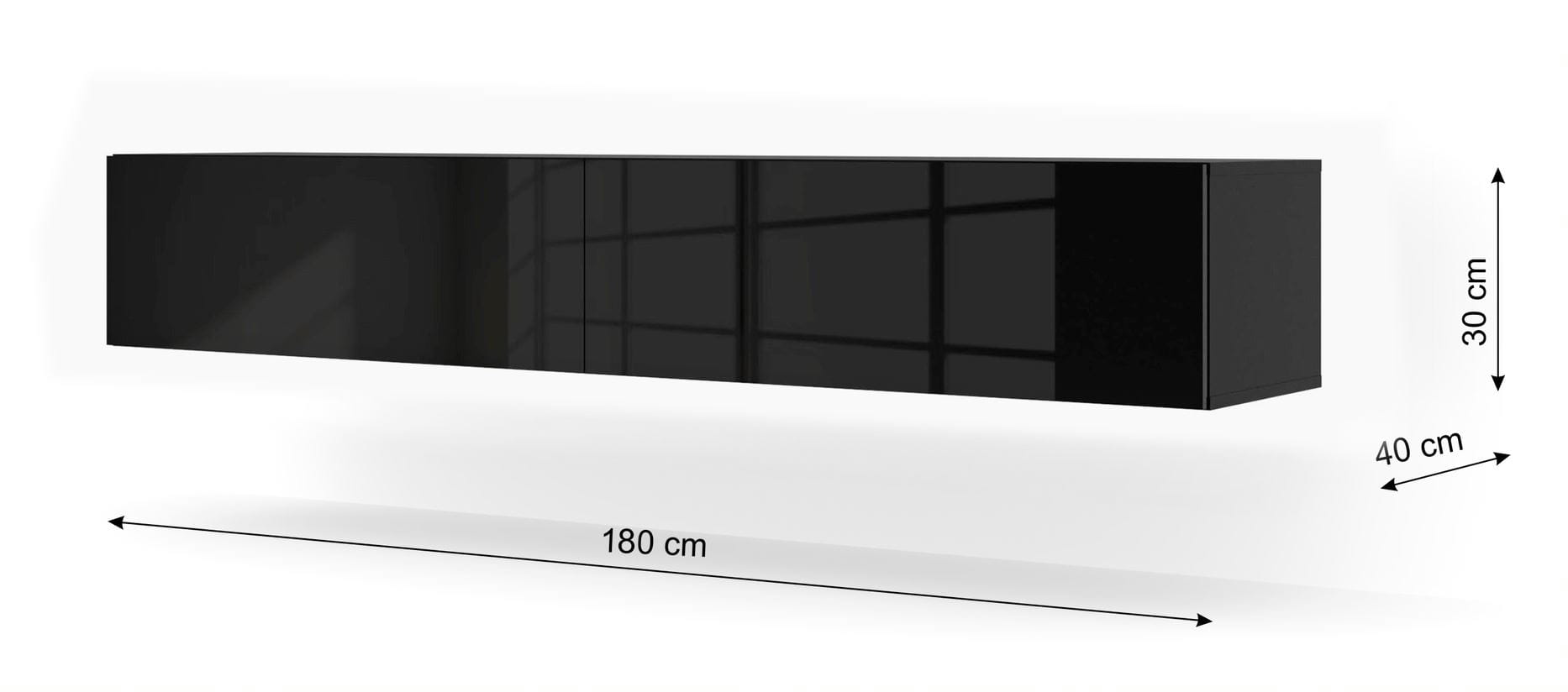 Szafka RTV Bingo 180 cm wisząca, czarny połysk
