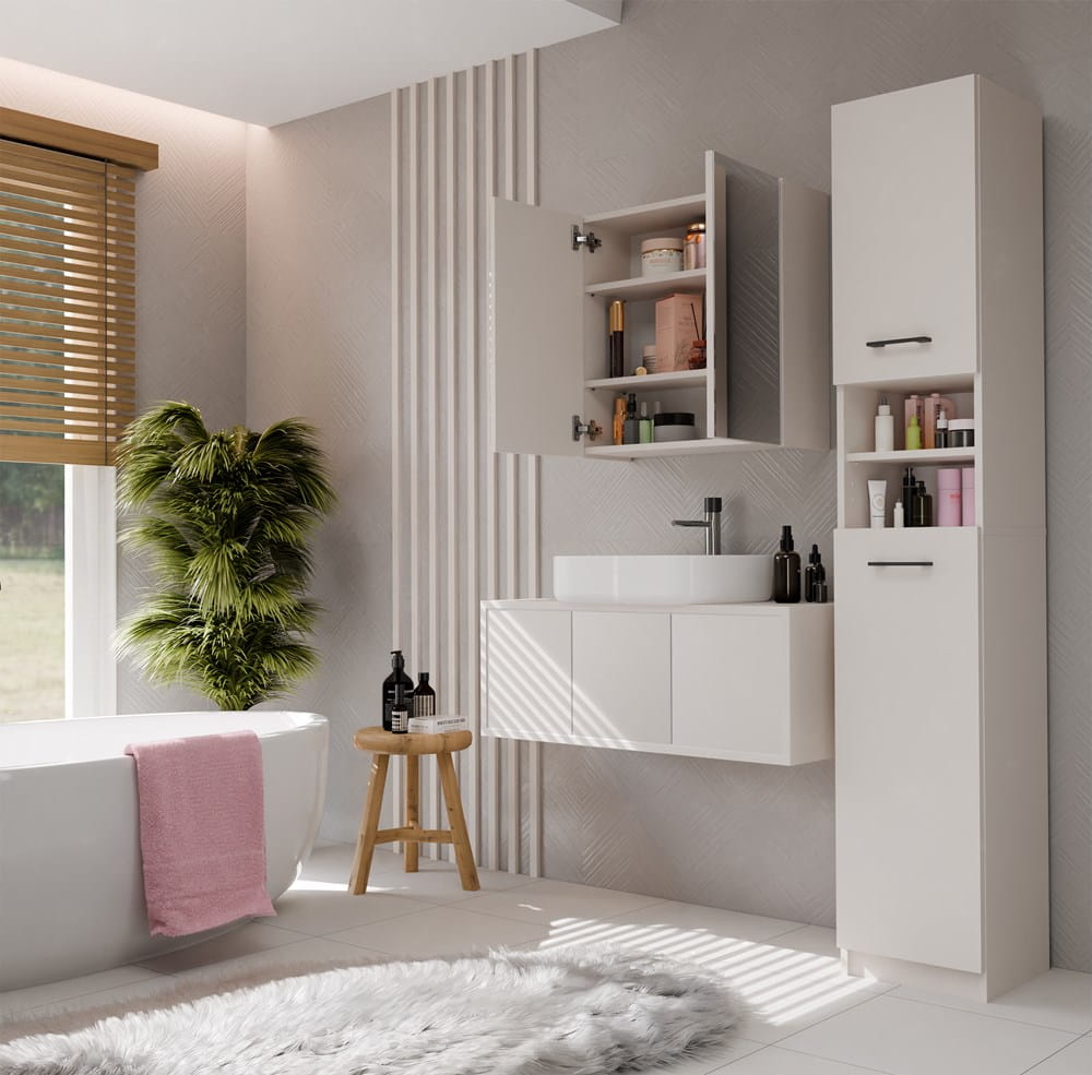 - Idealna do małych i średnich łazienek – doskonale zagospodarowuje przestrzeń nad umywalką