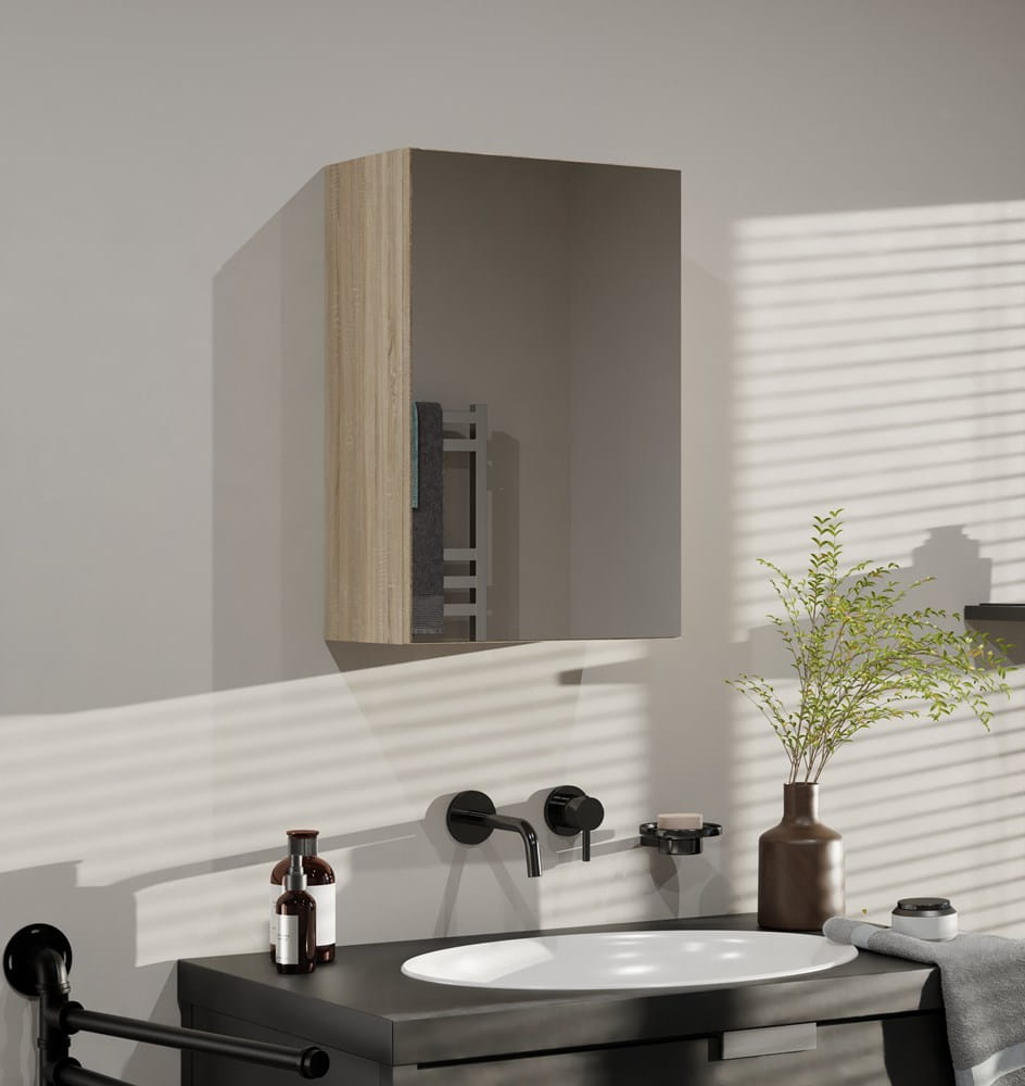 Szafka wisząca łazienkowa nad umywalkę, dąb sonoma z lustrem Pola 1 DL to funkcjonalny i estetyczny wybór, który sprawdzi się w różnych wnętrzach. Wyróżnia się solidnym wykonaniem i ponadczasowym charakterem. Będzie idealnym dodatkiem do Twojej przestrzeni.