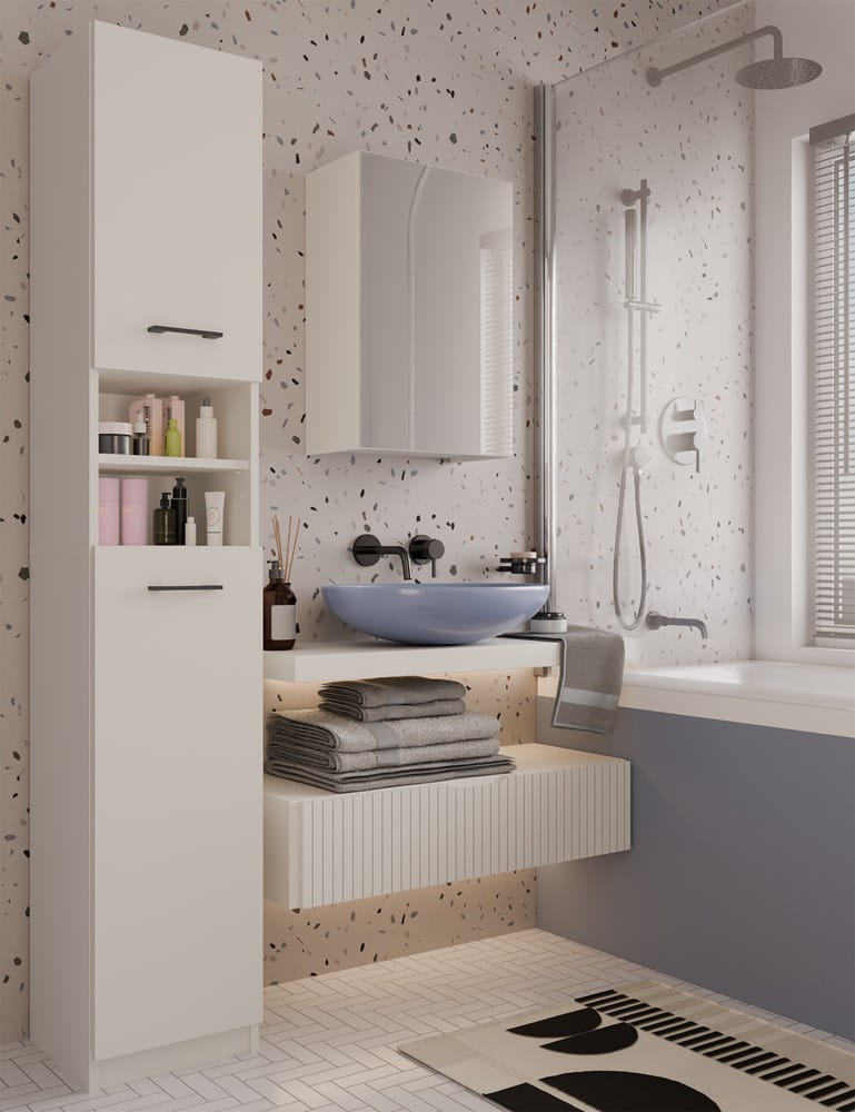 Dzięki minimalistycznej formie, gładkim bokom i solidnym okuciom, POLA 1DL doskonale sprawdzi się zarówno w małych, jak i średnich łazienkach, łącząc elegancję z praktycznością.