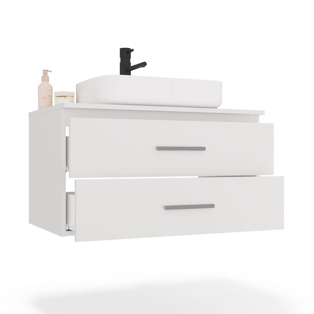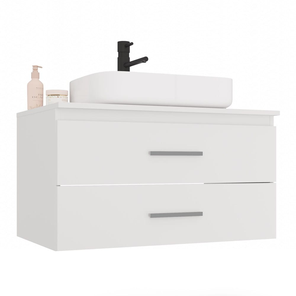 Szafka zaprojektowana została jako baza pod umywalkę nablatową (brak blatu i umywalki w zestawie), co umożliwia swobodne dopasowanie tych elementów do stylu i kolorystyki łazienki. Możliwość zawieszenia na dowolnej wysokości daje elastyczność aranżacyjną i oszczędność miejsca.