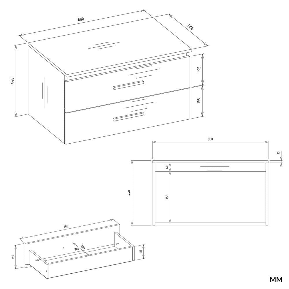 - 2 pojemne szuflady – bez wycięć, maksymalne wykorzystanie przestrzeni