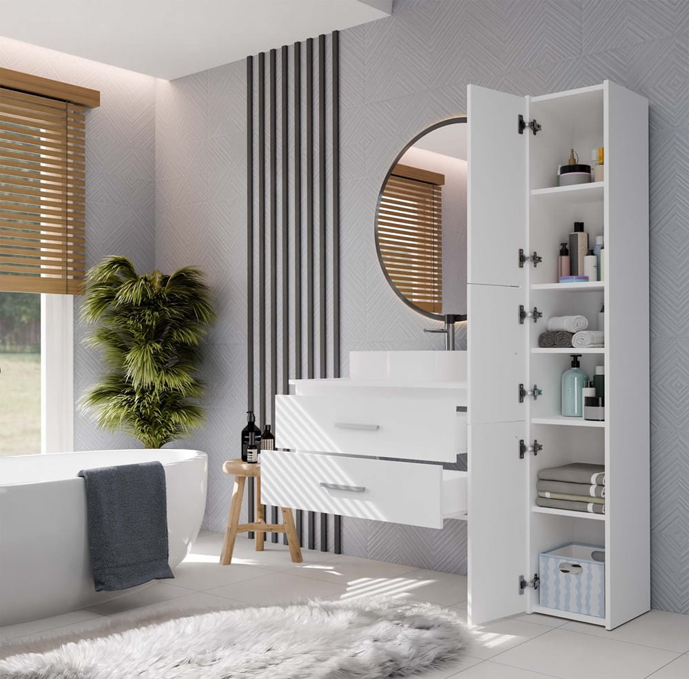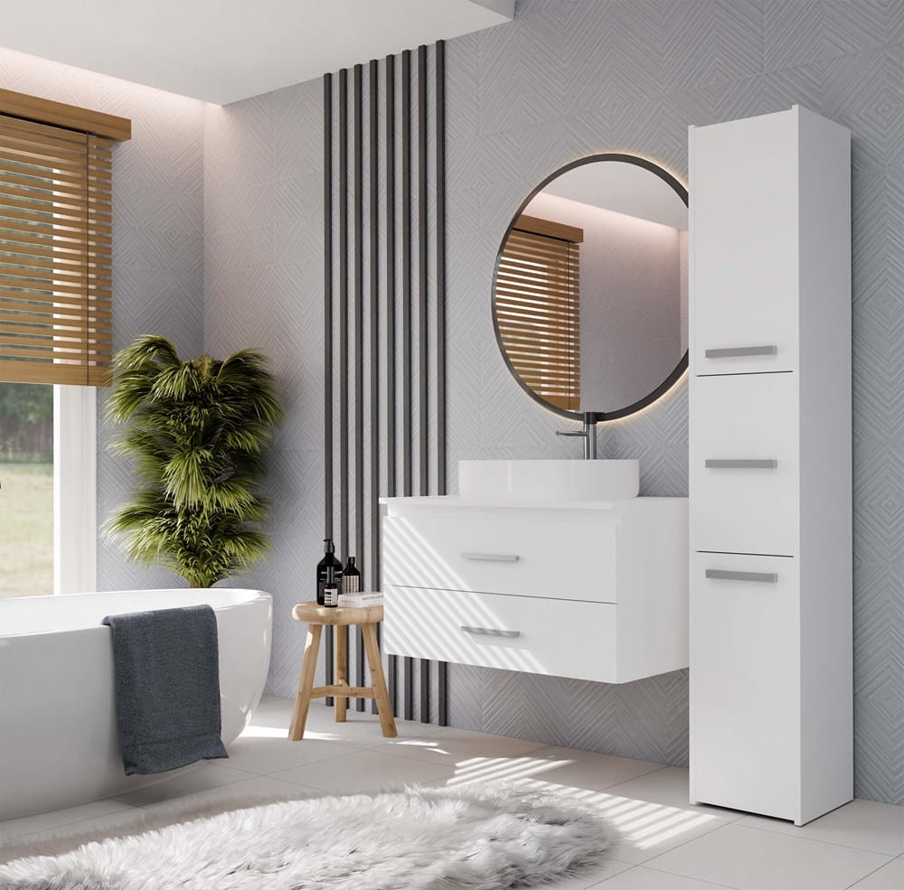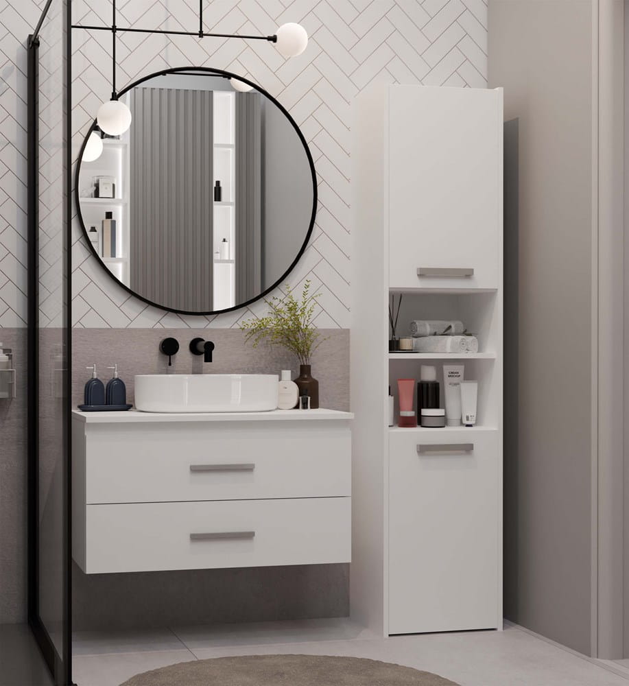 Szafka łazienkowa NEL 80 to nowoczesne i funkcjonalne rozwiązanie, które świetnie sprawdzi się w średnich i większych łazienkach. Klasyczna biel i minimalistyczny design pozwalają łatwo dopasować mebel do różnych aranżacji wnętrz.