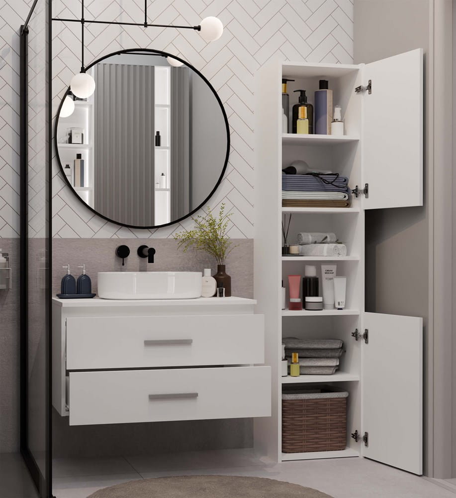 - Szerokość 80 cm – idealna do średnich i większych łazienek