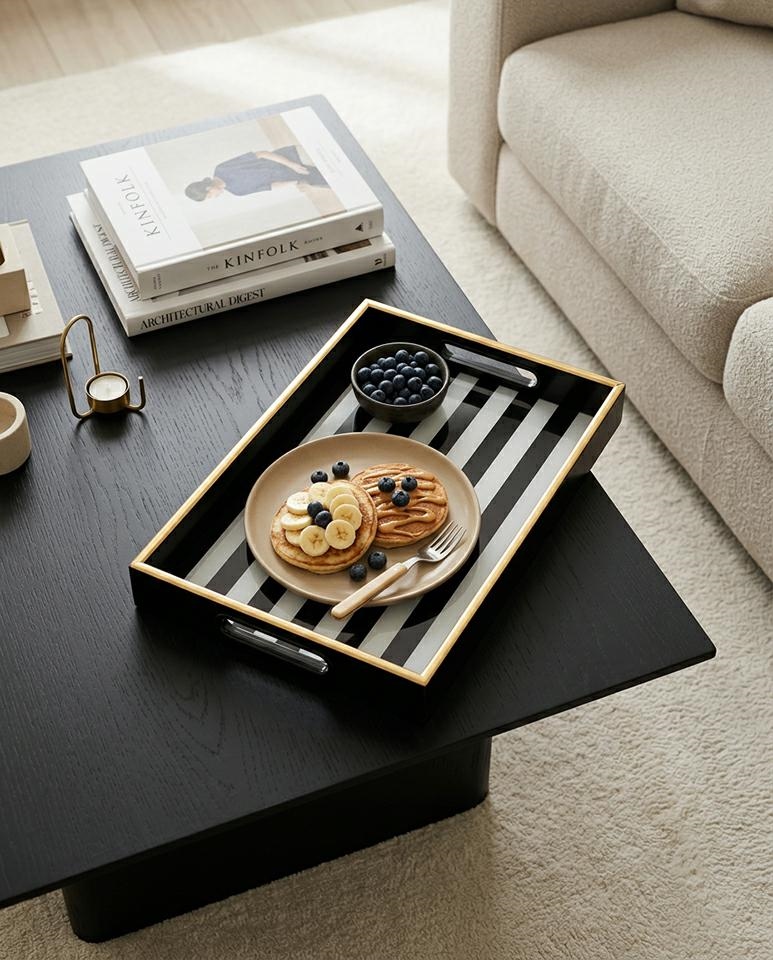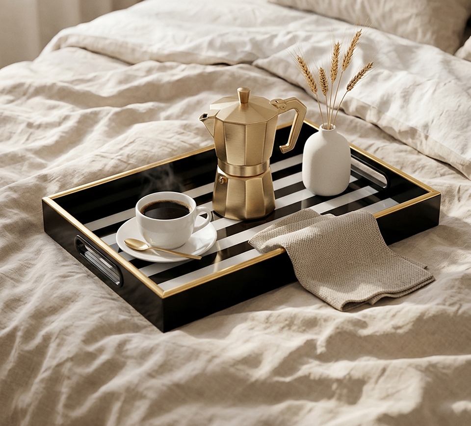 - Eleganckie połączenie kolorów – zestawienie bieli, czerni i złota nadaje tacy luksusowy wygląd