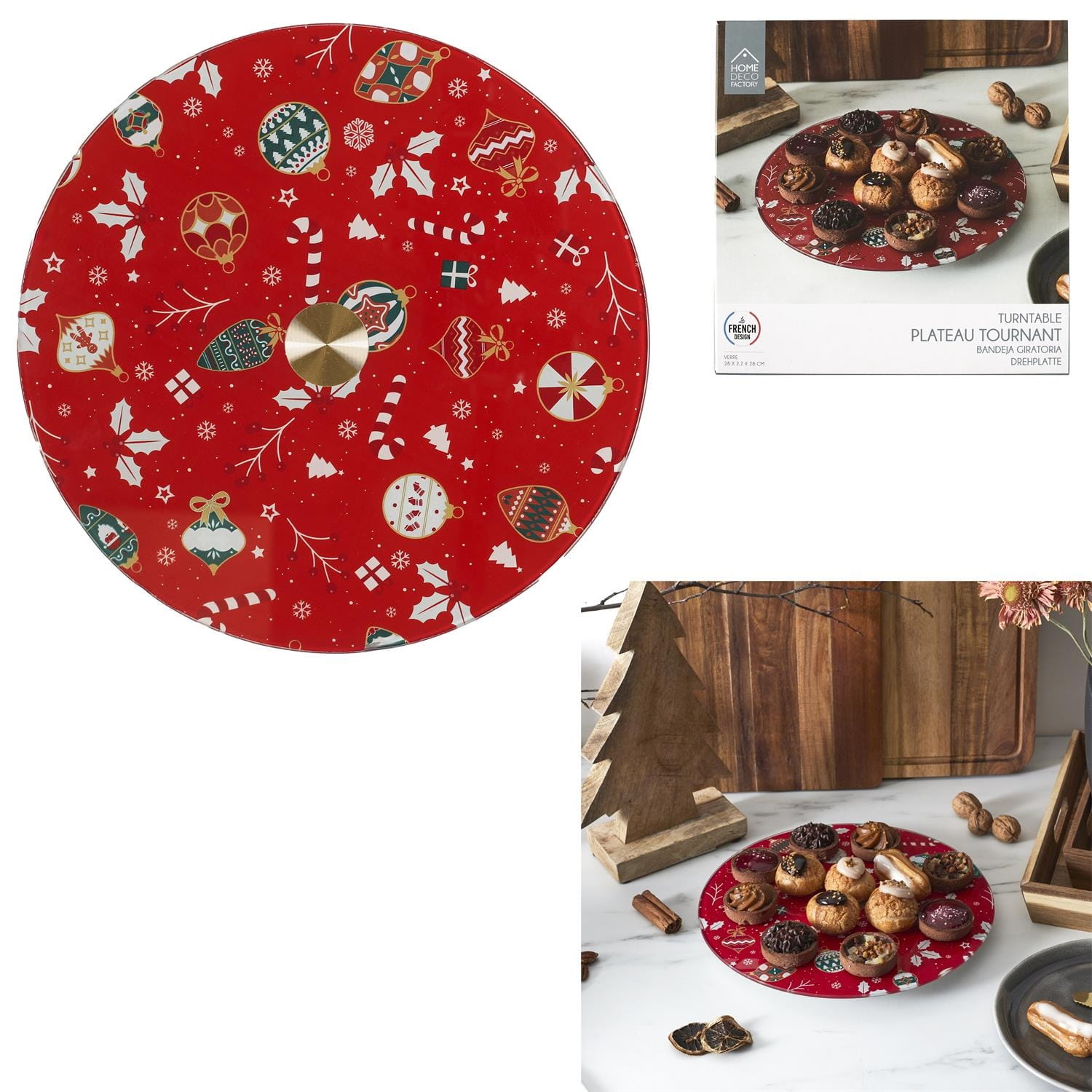 Obrotowa taca świąteczna ze szkła – dekoracyjna patera z motywem świątecznym