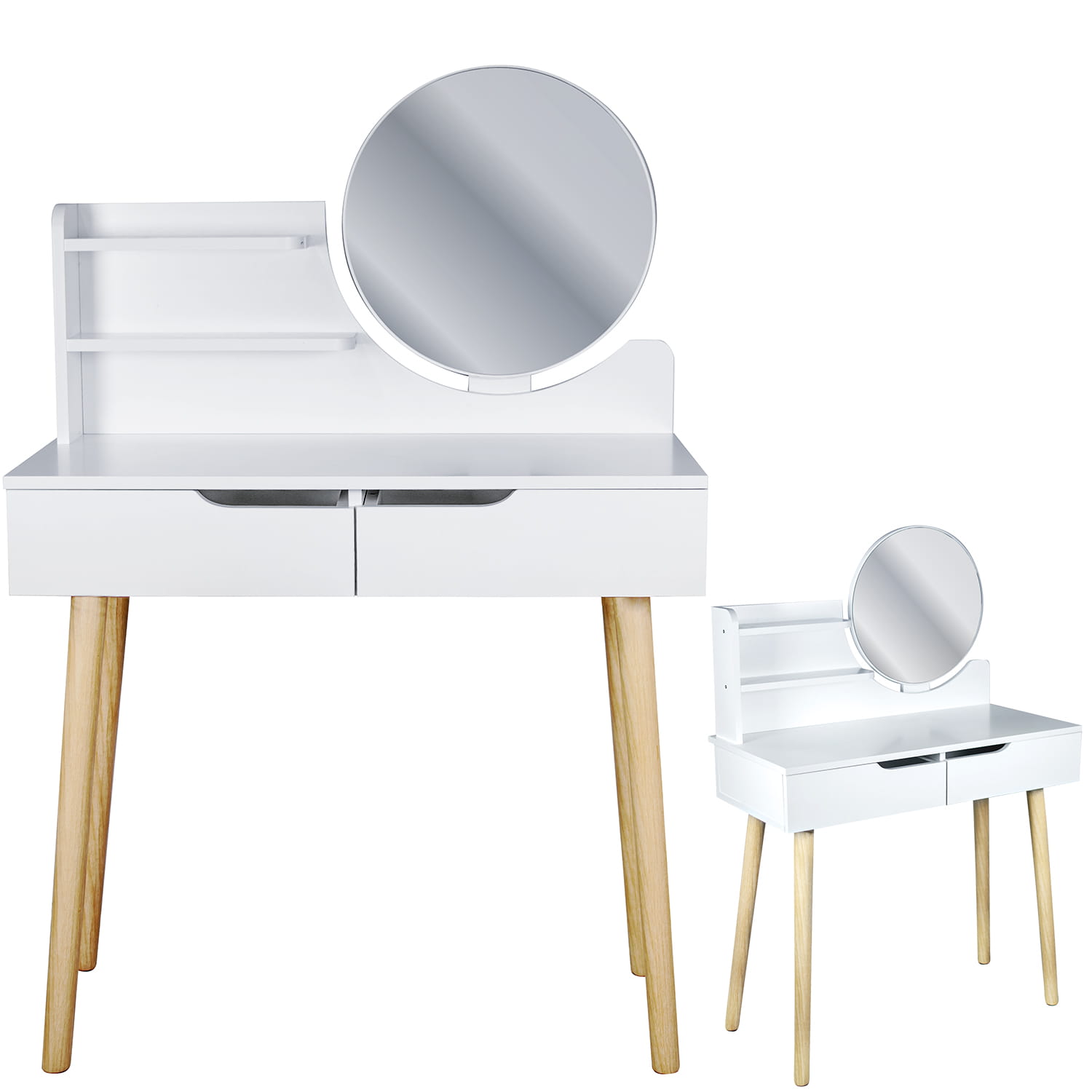 Toaletka kosmetyczna z lustrem – biała, styl Scandi