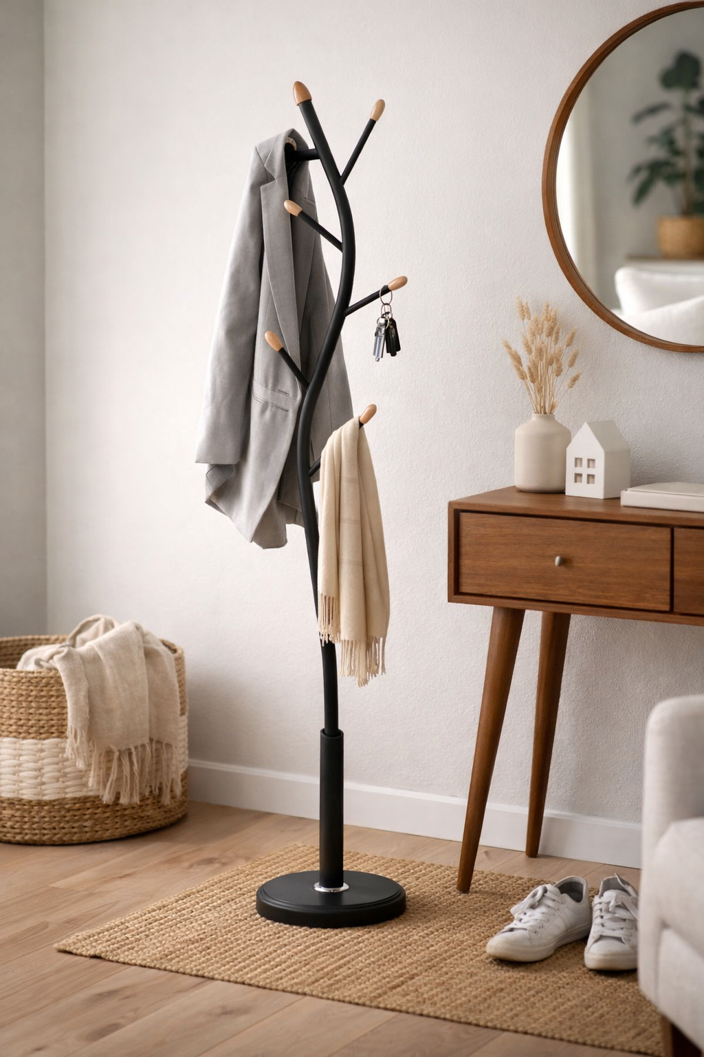- Podstawa o średnicy 32 cm – stabilna i kompaktowa, odpowiednia nawet do mniejszych przedpokojów