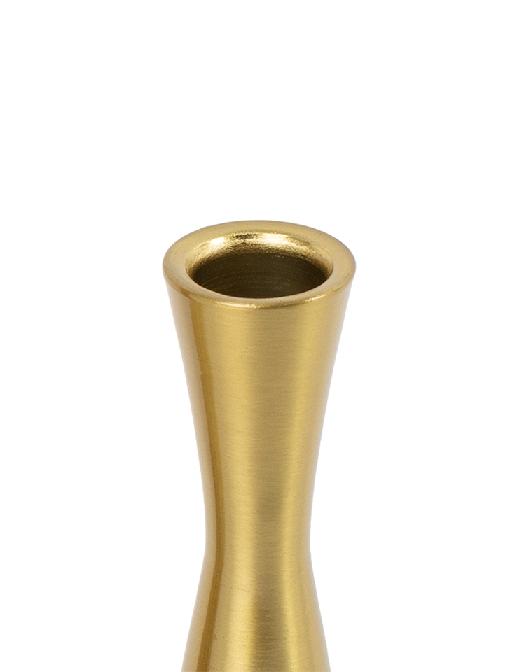 Smukła, nowoczesna forma oraz wykończenie w szczotkowanym złocie sprawiają, że świeczniki prezentują się lekko, a jednocześnie bardzo efektownie.
