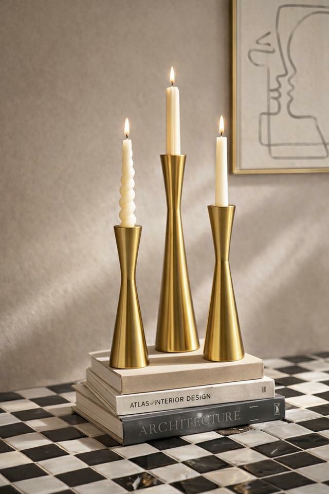 Zestaw 3 świeczników SHP TRIO w kolorze złotym to stylowa dekoracja, która subtelnie podkreśla charakter wnętrza i dodaje mu eleganckiego blasku.
