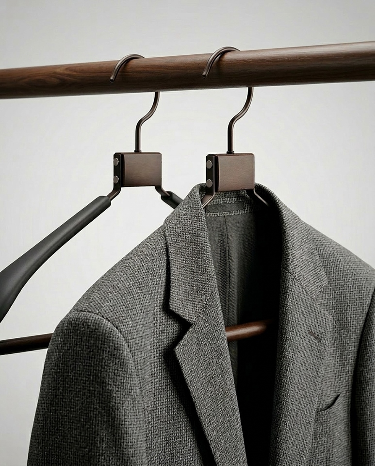 Zestaw 4 wieszaków drewnianych SHP SOLID czarny to praktyczne rozwiązanie do szafy, garderoby, przedpokoju lub showroomu, gdzie liczy się zarówno porządek, jak i ponadczasowy design.